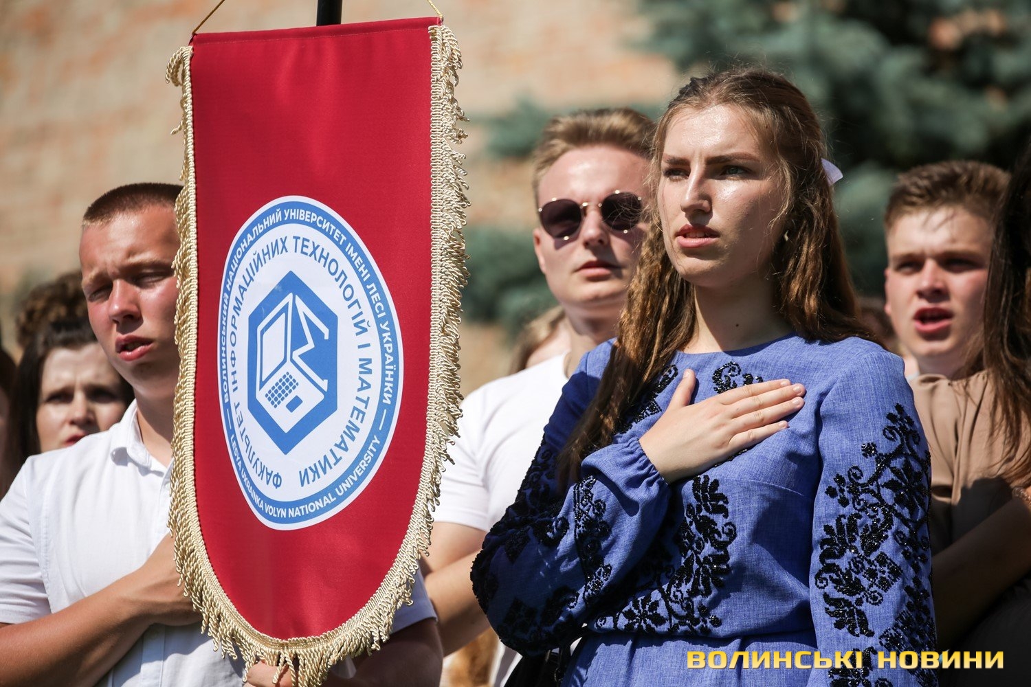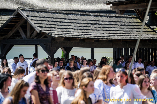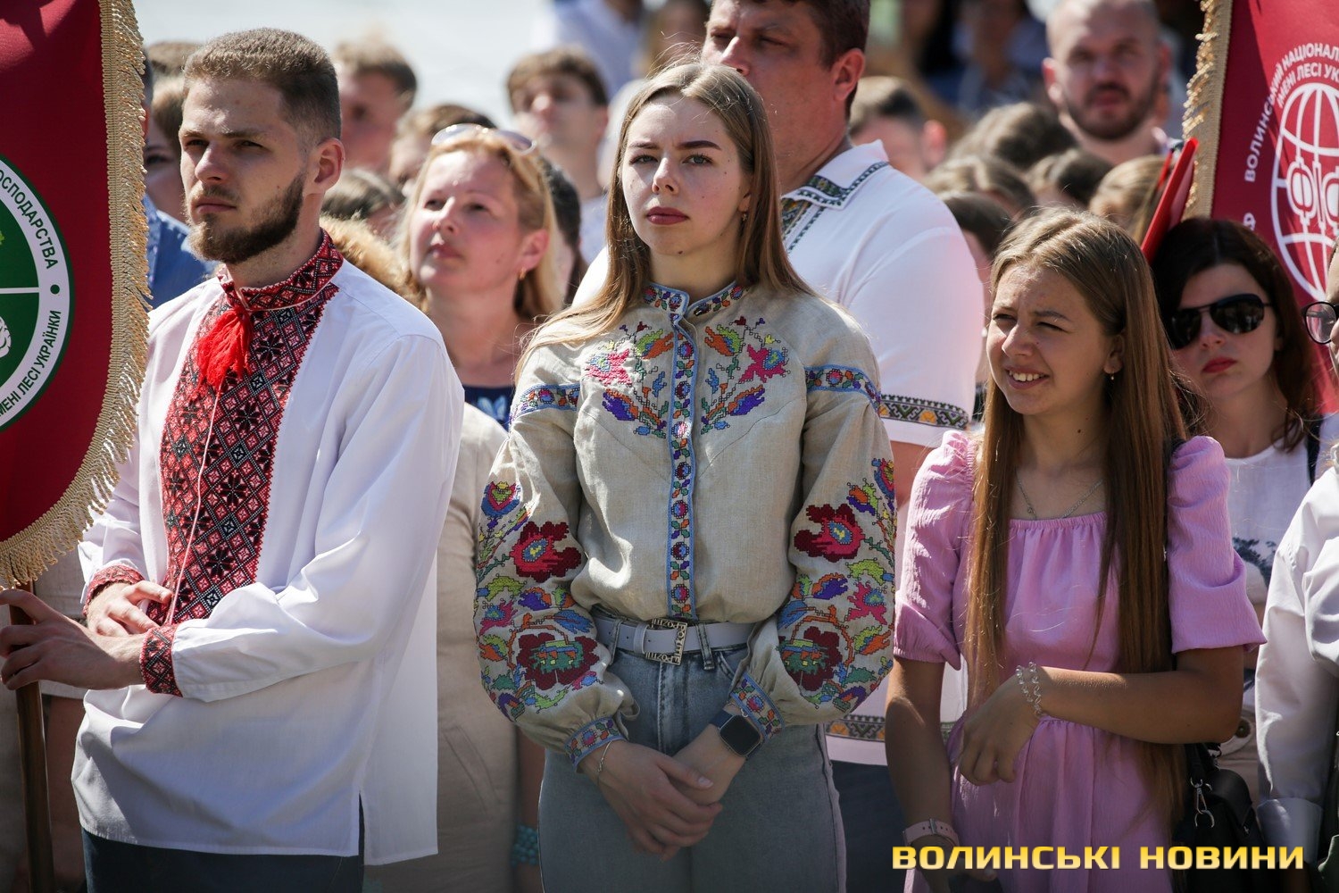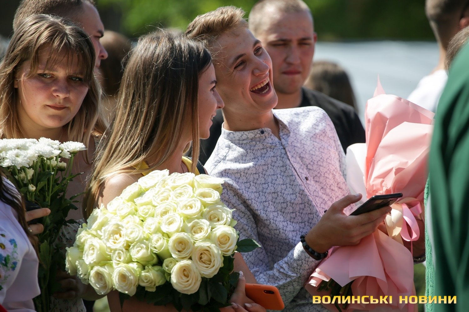 «Ви нарешті отримаєте папір, складений вдвоє, адже слово «диплом» саме так і перекладається. З цього місця, де ви стоїте, є дві дороги: перша – наукова, тобто вступ у магістратуру, друга – на вінчання в храм. Хай яку ви оберете, нехай вона буде для вас щасливою у нашій Україні», – побажав владика.Не обійшлося дійство і без привітання ректора ВНУ Анатолія Цьося, який розповів про успіхи університету в нелегкий час. Він також пригадав, що 16 липня 1993 року було підписано указ президента про створення Волинського державного університету імені Лесі Українки, що дозволило суттєво поліпшити освіту на території заходу України.