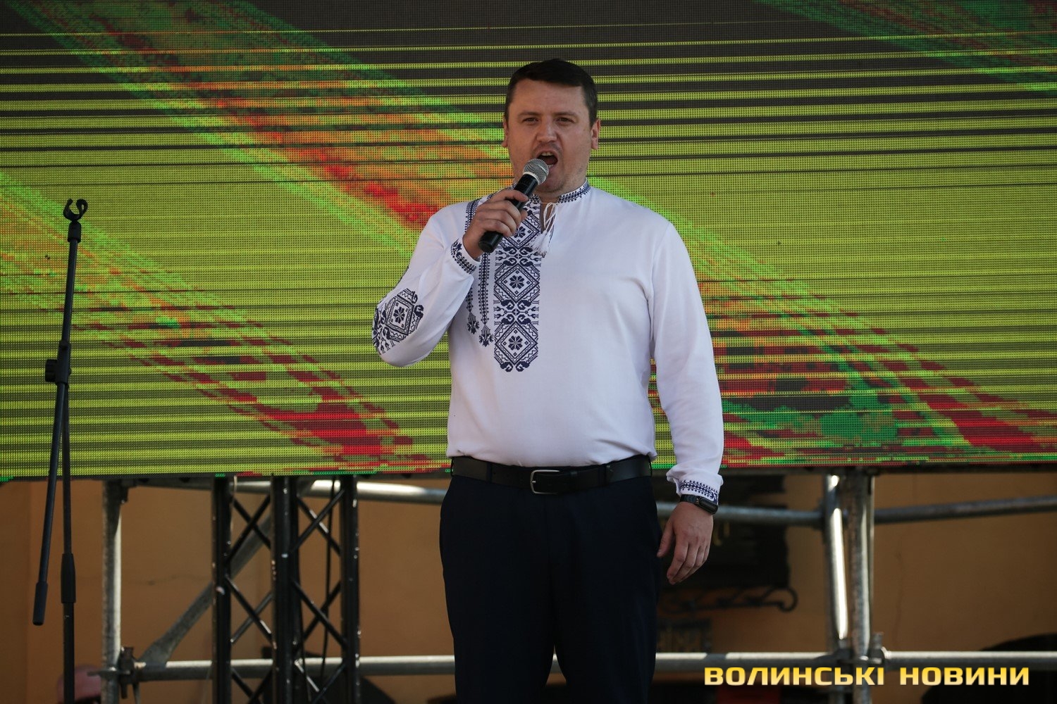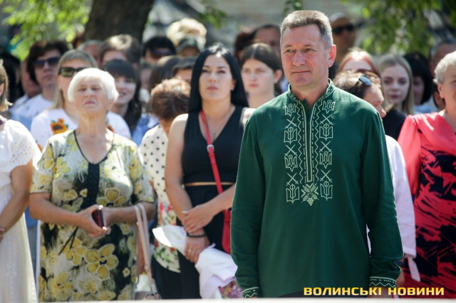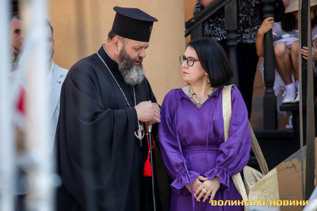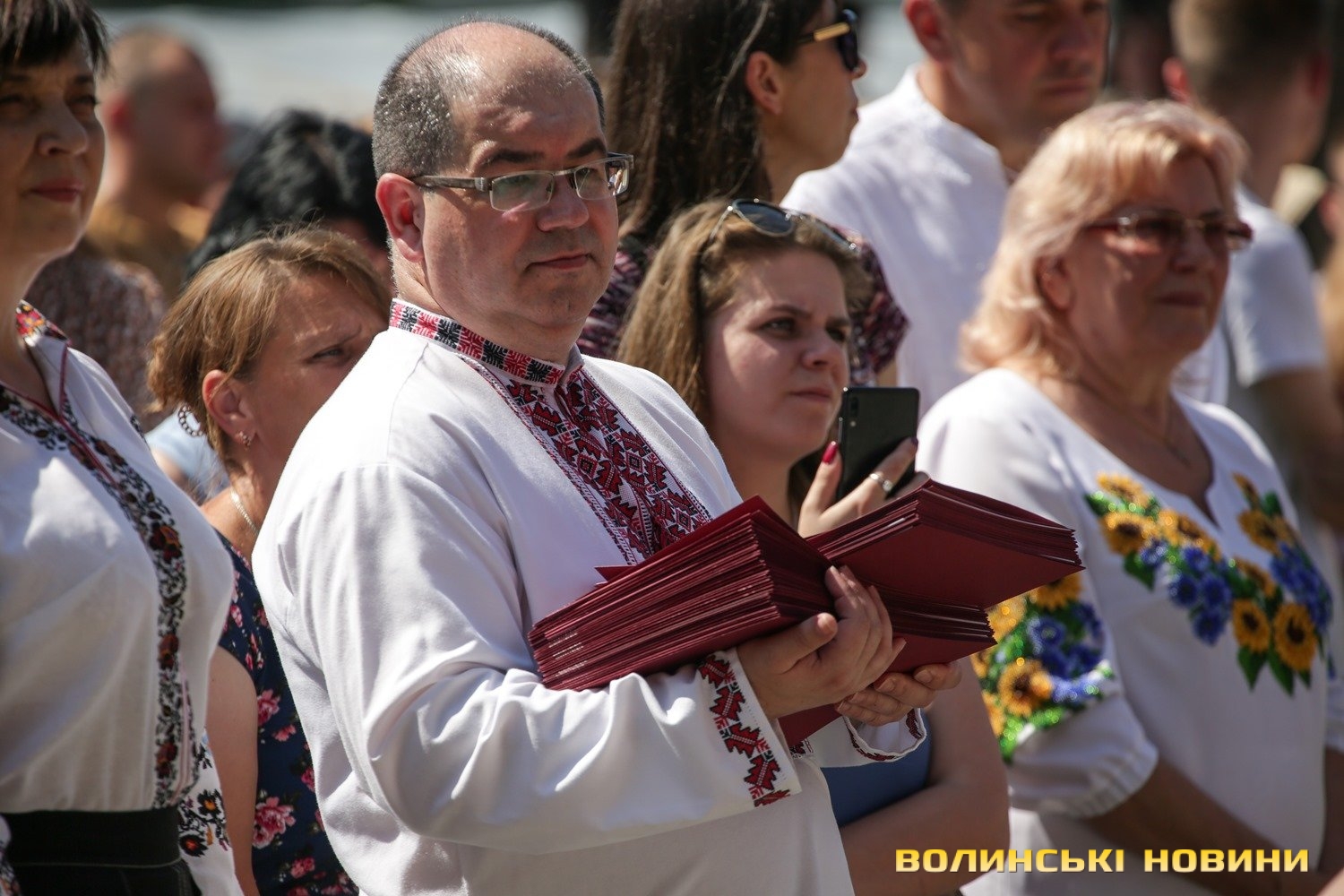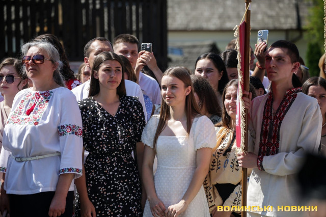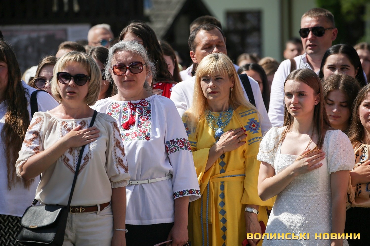 «Ви нарешті отримаєте папір, складений вдвоє, адже слово «диплом» саме так і перекладається. З цього місця, де ви стоїте, є дві дороги: перша – наукова, тобто вступ у магістратуру, друга – на вінчання в храм. Хай яку ви оберете, нехай вона буде для вас щасливою у нашій Україні», – побажав владика.Не обійшлося дійство і без привітання ректора ВНУ Анатолія Цьося, який розповів про успіхи університету в нелегкий час. Він також пригадав, що 16 липня 1993 року було підписано указ президента про створення Волинського державного університету імені Лесі Українки, що дозволило суттєво поліпшити освіту на території заходу України.