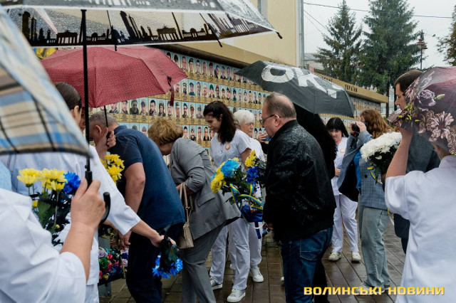 Начальник управління охорони здоров’я Волинської ОВА Юрій Легкодух також приєднався до вшанування пам’яті загиблих воїнів і наголосив, що подібні заходи є гарним нагадуванням про те, якою ціною дається свобода нашої країни.Батьки загиблого Романа Ткача, старшого бойового медика роти вогневої підтримки мотопіхотного батальйону, Наталія та Леонід поділилися спогадами про сина і розповіли про те, яким мужній воїн був у житті.«Після закінчення 9 класу він прийшов і заявив, що хоче стати медиком. Прийшов батько і перепитав, чи дійсно він цього хоче, бо це дуже відповідальна професія. Опанувавши професію, він пішов працювати у Луцький госпіталь анастезіологом. Згодом брав участь у АТО, там отримав паранення й інвалідність. Але його покликання залишалося незмінним.
