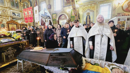 Плакало сіре небо, плакали земляки, плакали син і доньки, плакала невтішна мати. Піднести молитви за упоуій душі Воїна прийшли односельчани, священники округи, друзі та знайомі.