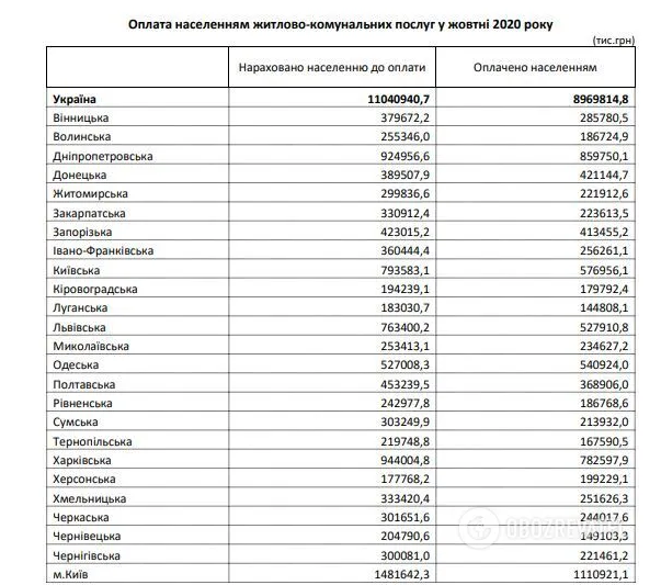 У жовтні поточного року українцям на оплату житлово-комунальних послуг нарахували сумарно 11 млрд грн, що на 57% перевищує показник минулого року (7 млрд грн). В середньому платіжка на одну сім’ю зросла з 555,5 до 741,9 грн.