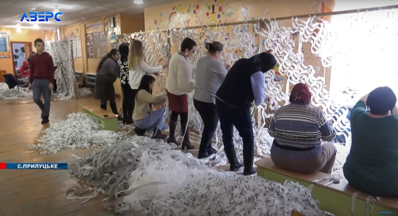 Зараз школярі та дорослі плетуть зимові маскувальні сітки білого кольору. Мають матеріали й для весняного маскування.
