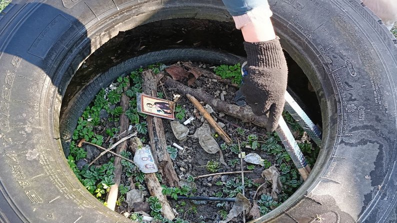 «Вони знайшли того мужчину. Він мені дзвонив, що то його паспорт. А вчора ходила на чужу дільницю, то знайшла банківську картку. Буває часто, що знаходжу картки. Тут поруч банк, то я туди заношу», – говорить Світлана Майко.Під час прибирання у дворі, біля дороги, двірниця знайшла іконки в автомобільному скаті. Припускає, що хтось із власників автомобілів їх туди викинув. Що з ними робити Світлана поки не знає, бо на смітник виносити не хоче. Залишила на місці.