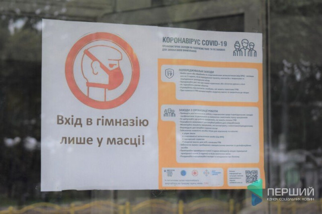 В гімназії діють правила, які визначило Міністерство освіти та науки: учні молодших класів можуть не одягати маски, а от середніх і старших мусять носити їх в коридорах. На уроках вони також можуть бути без засобів захисту.