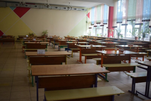 Їдальня тепер працює за окремим розкладом. Столи розставили так, щоб між ними було 1,5 метра відстані, і сідати за них може максимум 4 людини. Буфет не працює.