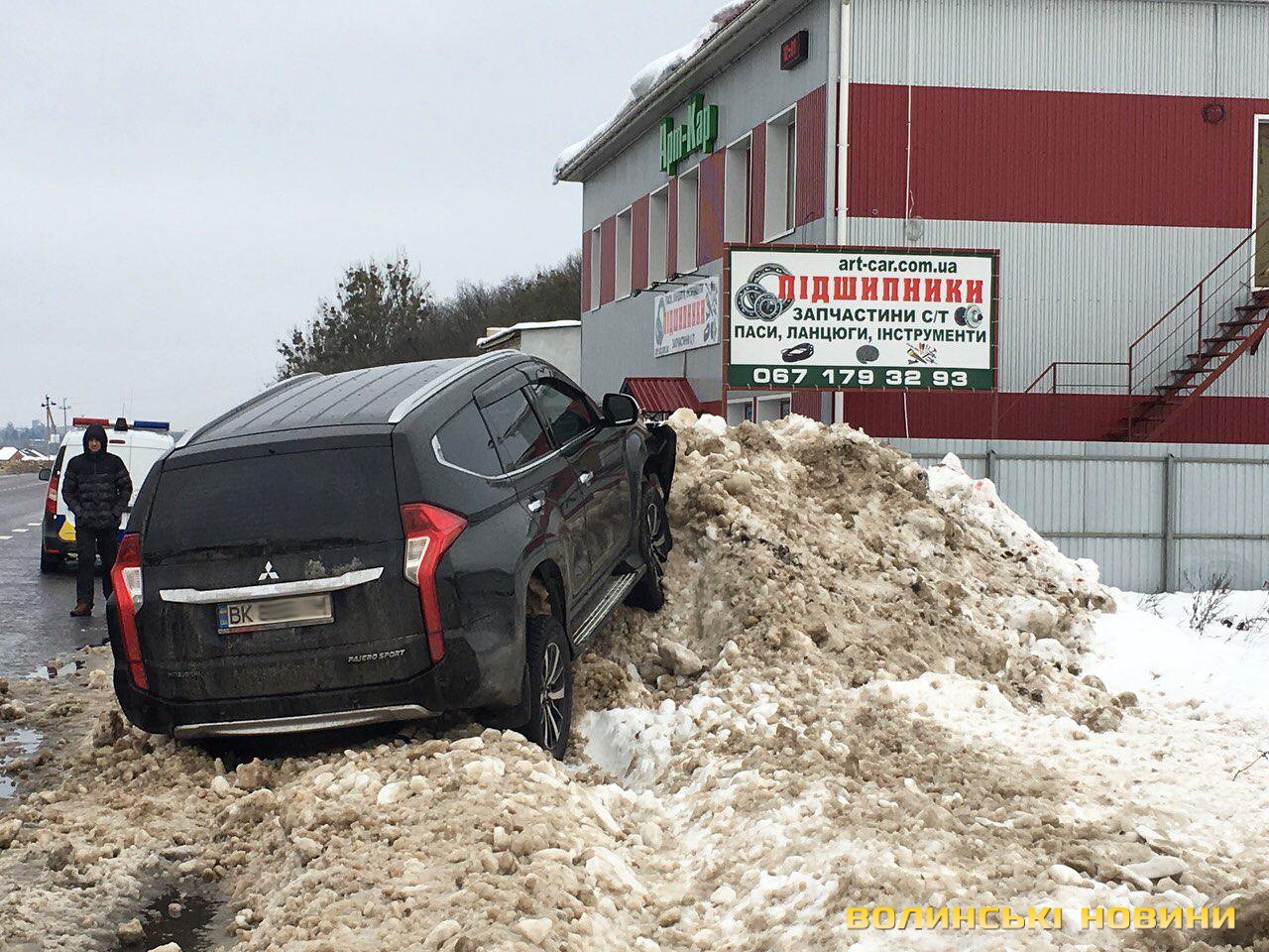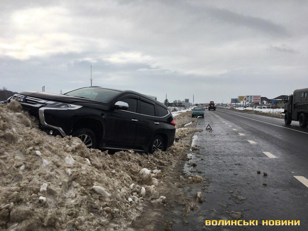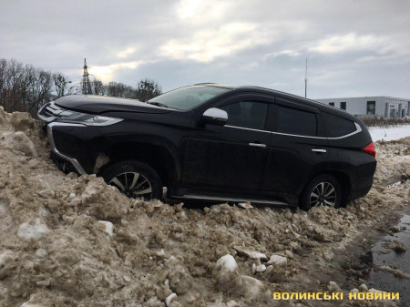 Поблизу Луцька Mitsubishi влетів у сніговий замет