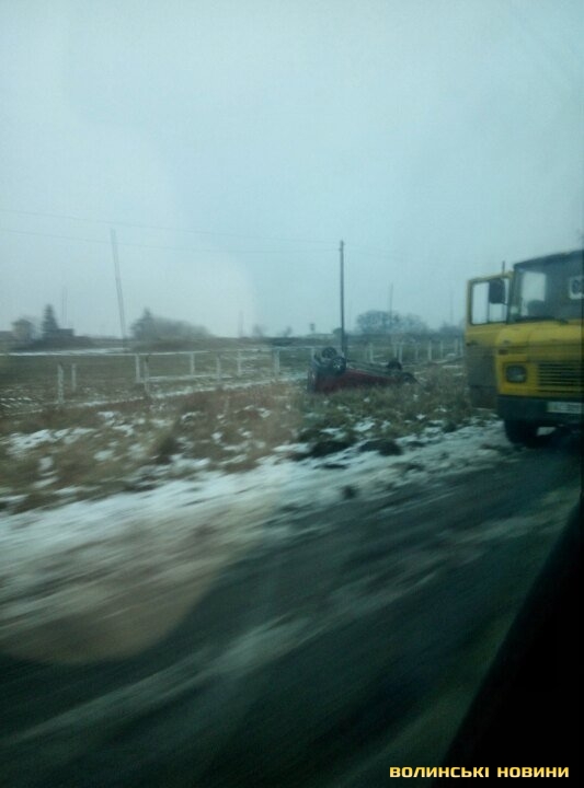 Поблизу Луцька автівка злетіла в кювет і перевернулася