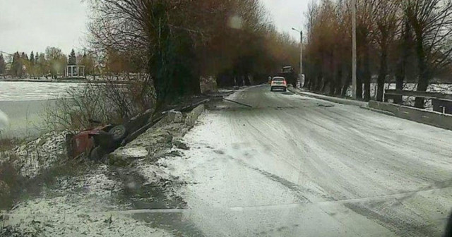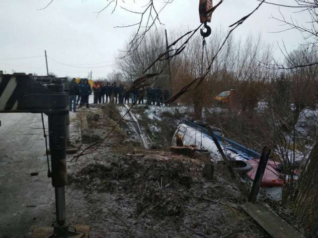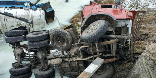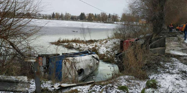 Водій молоковоза, коли проїжджав цим шляхом, швидше за все, не впорався з керуванням. І як наслідок — автомобіль опинився у воді.