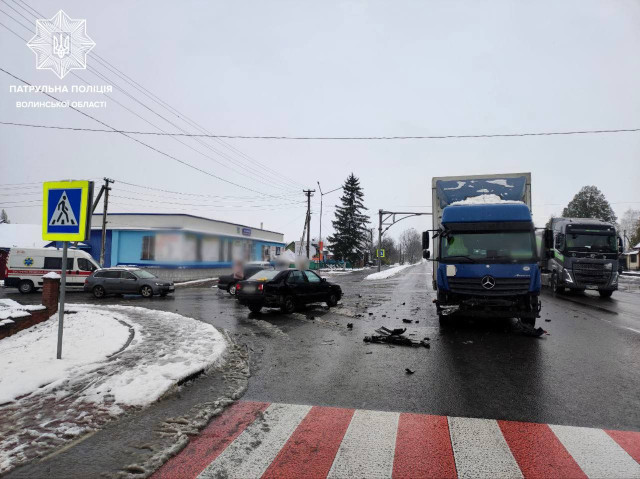 Поблизу Луцька – подвійна аварія: водій Chery не пропустив вантажівку і зіткнувся з легковиком