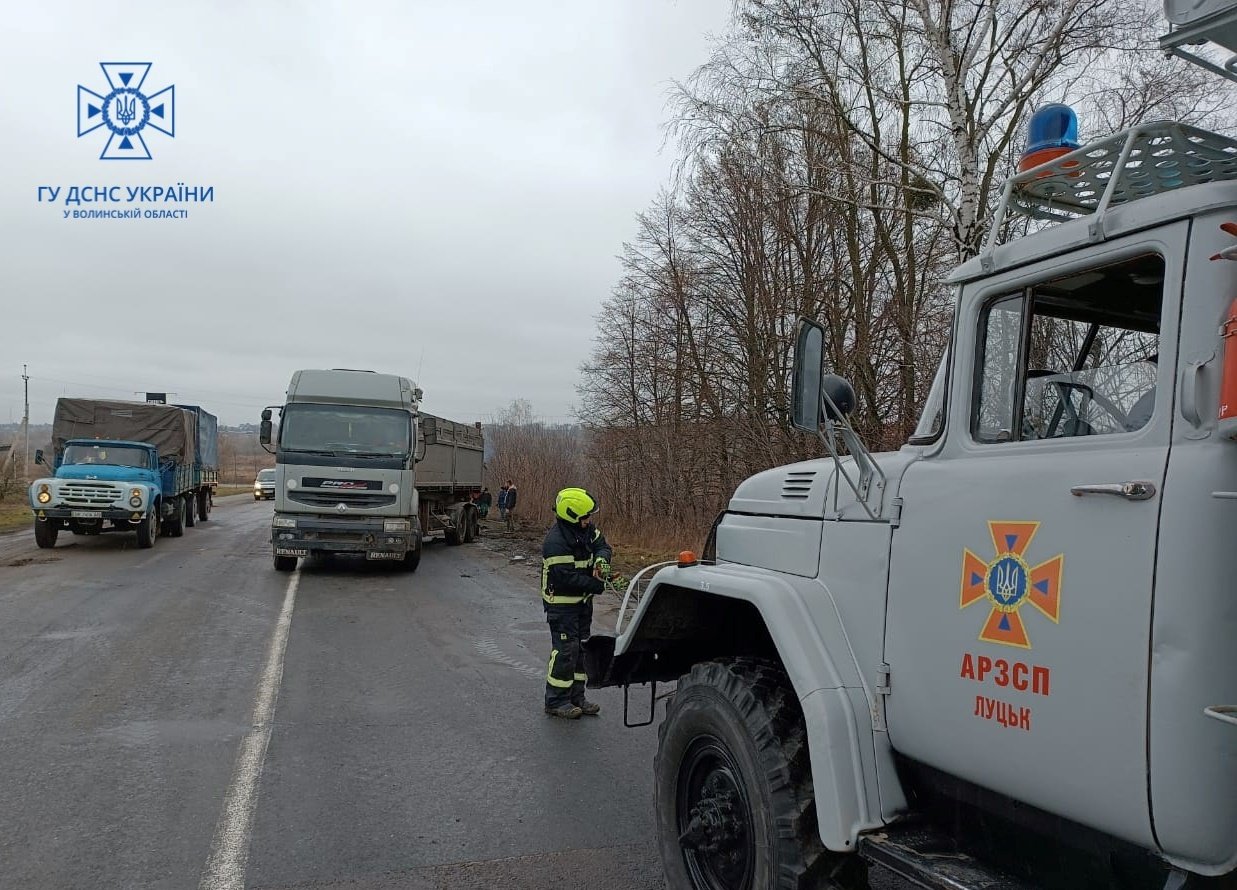 20 січня група аварійно-рятувальних робіт загону спецпризначення надали допомогу водію вантажівки, яка з’їхала на узбіччя дороги в с. Крупа Луцького району.