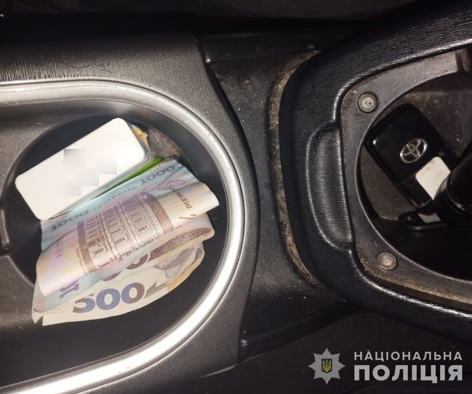 Згодом під час оформлення адміністративних матеріалів правопорушник, аби уникнути відповідальності, дав поліцейським хабара – 2500 гривень, які поклав у підлокітник службового авто.