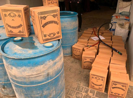 У результаті проведення заходів вилучено 760 літрів рідини з характерним запахом спирту, понад 650 літрів готової горілчаної продукції, розлитої в тару «Bag in box», понад 400 пачок тютюнових виробів без марок акцизного податку встановленого зразка, пластикову тару, шланги, лійки, спиртометри, що використовувались в ході здійснення протиправної діяльності.