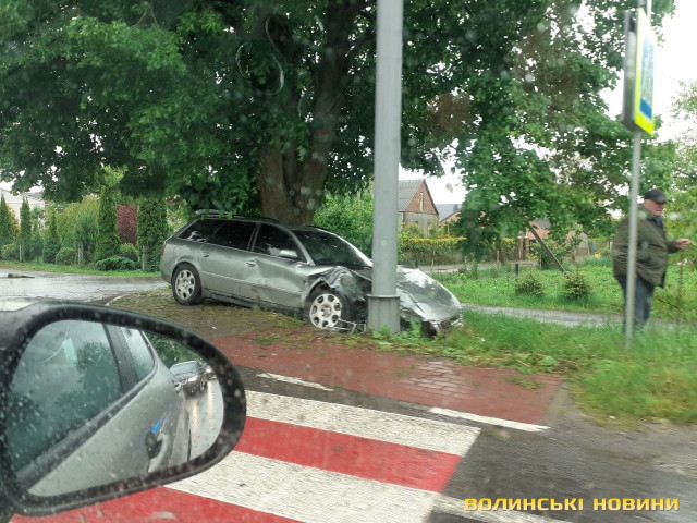Поблизу Луцька сталася аварія – зіткнулися ВАЗ і Audi, у результаті Audi злетіло на узбіччя і в'їхало у стовп.