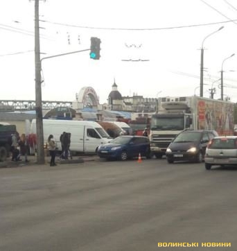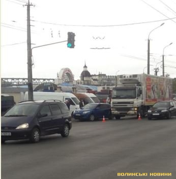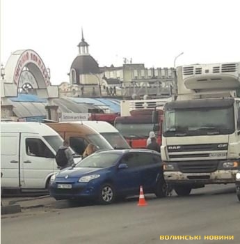 Поблизу Варшавського ринку у Луцьку трапилась дорожньо-транспортна пригода: вантажівка в'їхала у легковик.