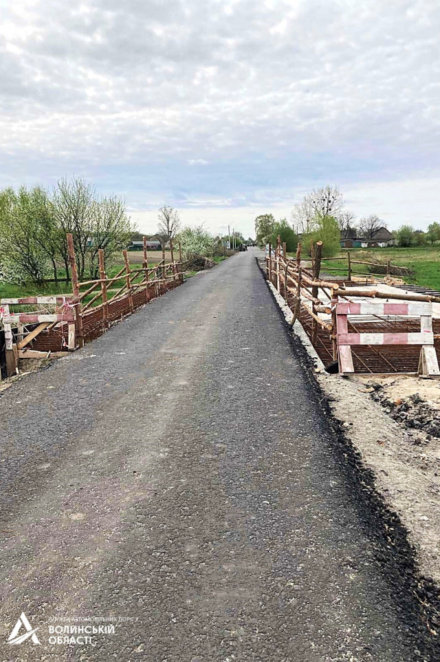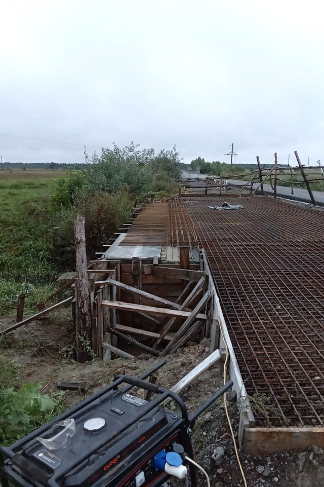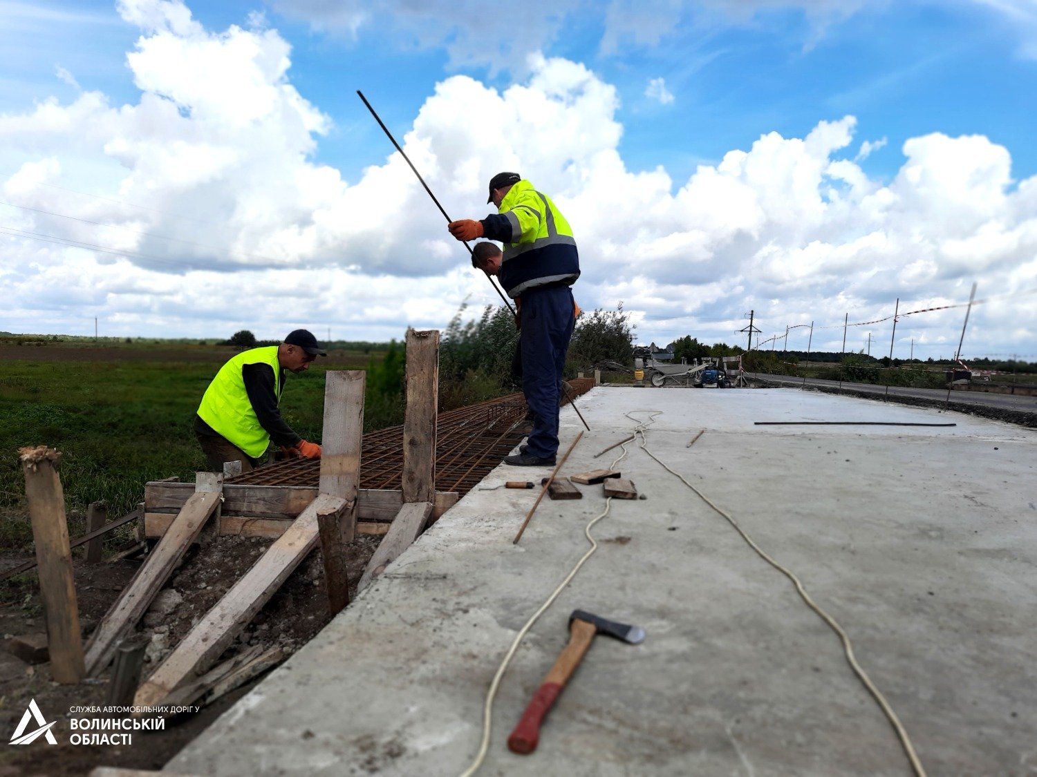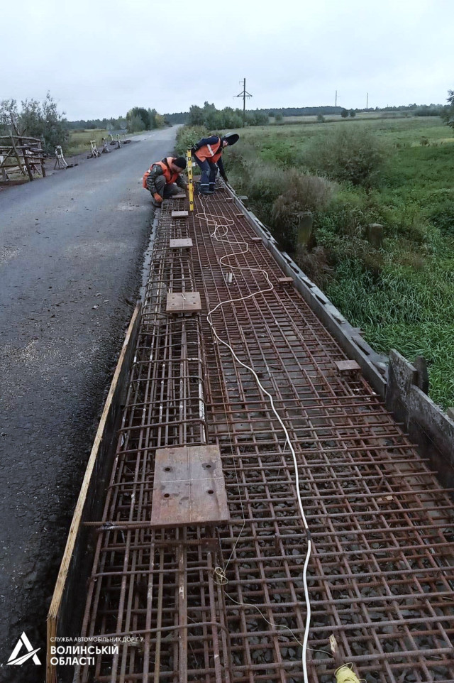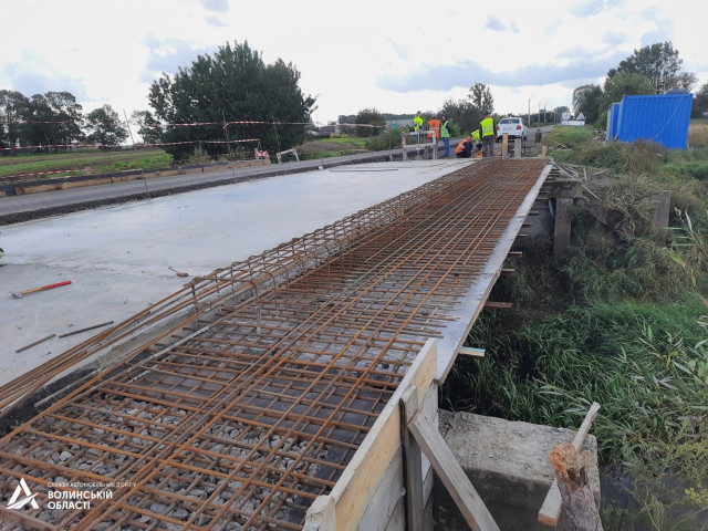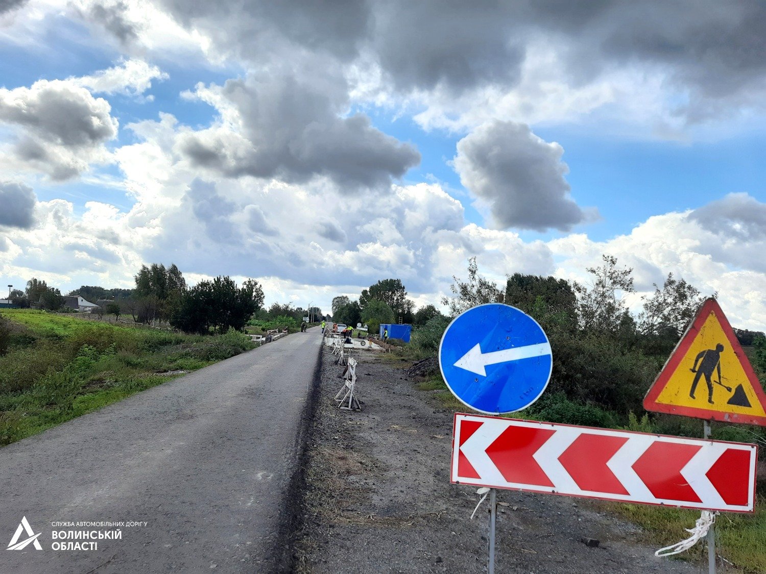На Волині дорожники продовжують ремонтувати міст біля села Сокіл, роботи над яким були призупинені через війну.