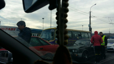 Зі слів очевидців, бус в'їхав у легковик. Учасники ДТП очікують на приїзд патрульних.