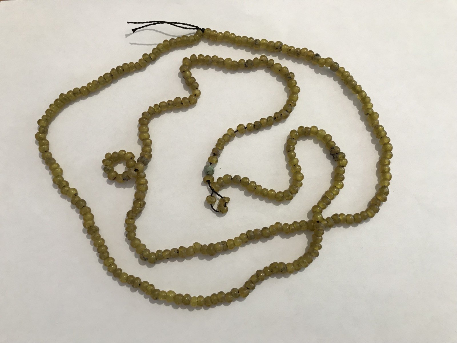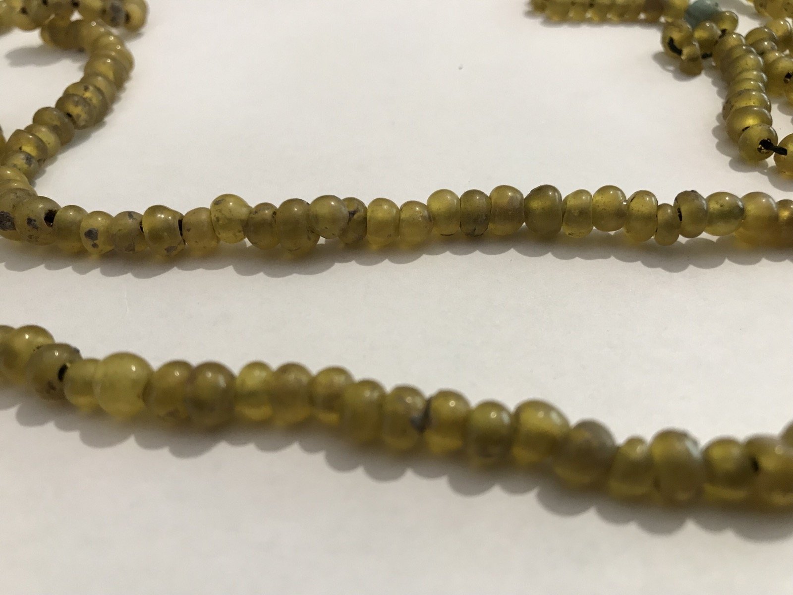 Первісна нитка зрозуміло не мала шансів зберегтись 800 років. Є фото моменту знахідки (чітко видно форму намиста) а на іншому фото намисто сформоване на вже сучасній нитці. Все просто)