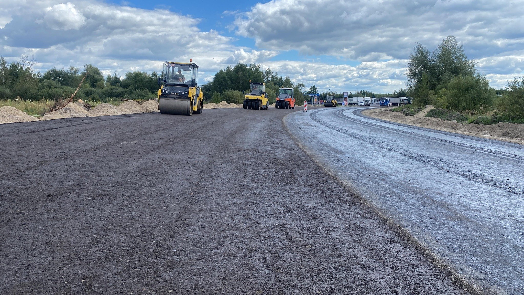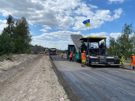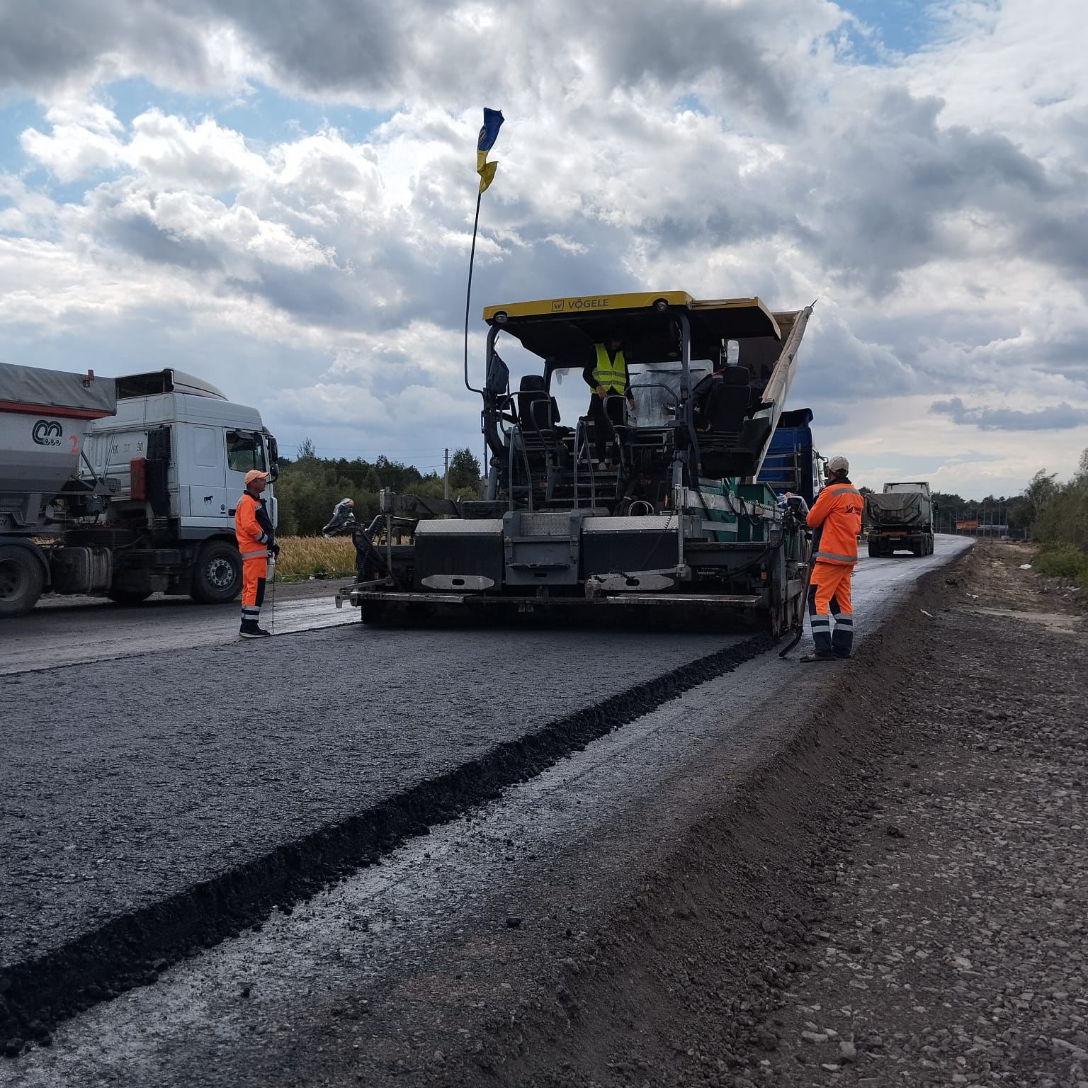 На одній із ділянок зводять конструкцію дороги «з нуля». Дорожники укладають два шари основи для міцного фундаменту нового дорожнього одягу. На ній вже розпочали влаштування першого з трьох запроєктованих шарів асфальтобетонного покриття.