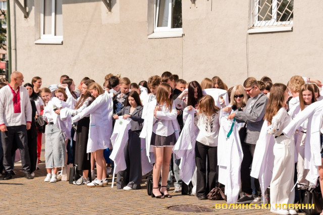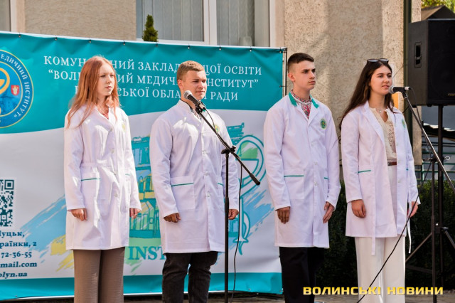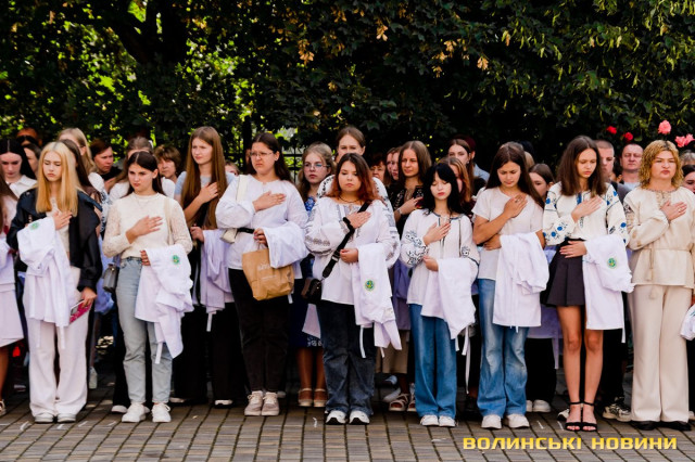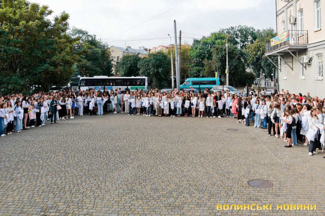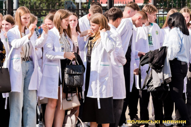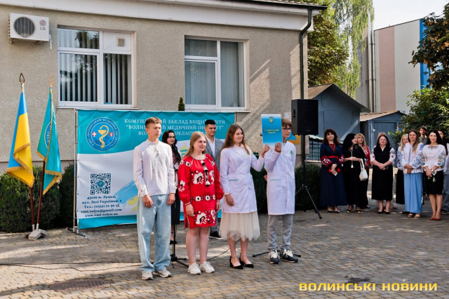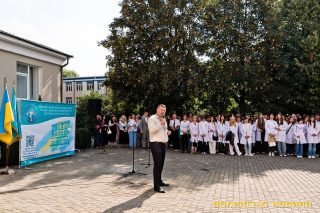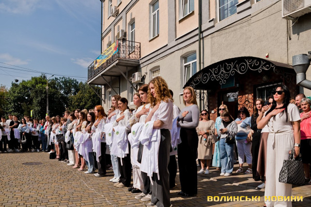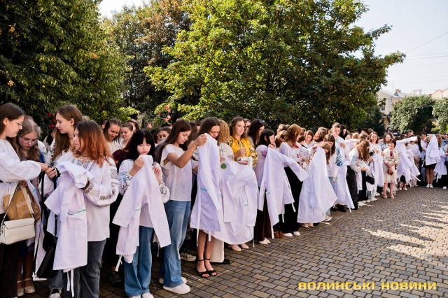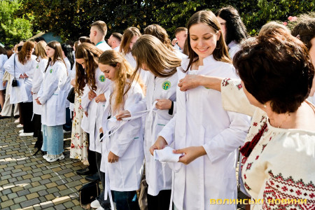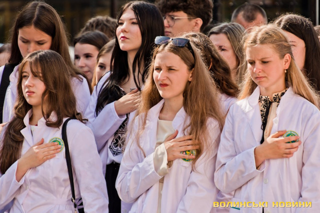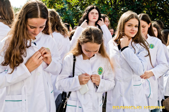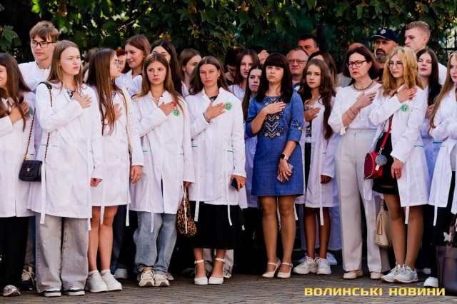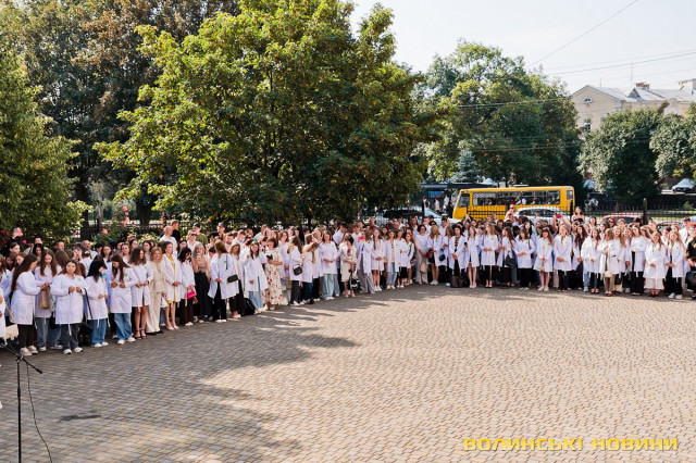 Сьогодні, першого вересня 2025 року, лави Волинського медичного інституту поповнили майже 300 нових студентів. Навчальний рік розпочався з урочистої посвяти першокурсників: після клятви служінню людям майбутні медики вперше одягнули символи професії – білі халати.