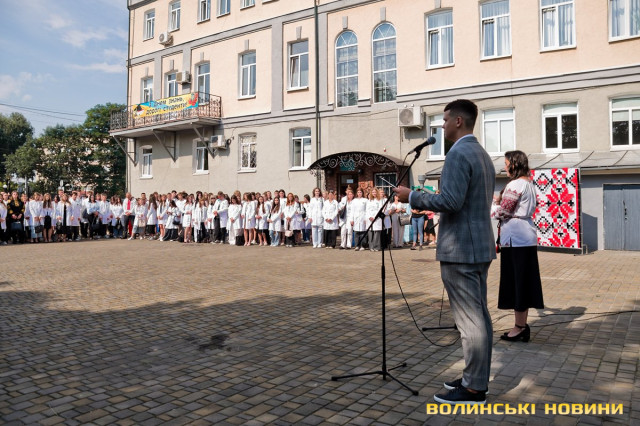 Читати ще: Для учнів однієї з найкращих шкіл у Луцьку пролунав перший дзвінок. ФоторепортажВорожі дії агресора не стали на заваді гарному настрою. І після вимушеної перерви, на щастя, не надто тривалої, студенти зайняли свої місця біля кураторів. Свято розпочалося – без зайвих слів і пафосних промов, але з усвідомленням гідності обраної професії, важливості дисципліни, взаємоповаги, готовності працювати. А працювати доведеться багато, адже рівень підготовки та й вимог, відповідно, у Волинському медичному інституті – серйозний. Нагадаємо, тут навчаються за такими спеціальностями як: медсестринство (сестринська справа, екстрена медицина/парамедик), лікувальна справа, фармація та стоматологія.Читати ще: Співпраця заради здорового дитинства: у Волинському медичному інституті для фахівців проводять тренінги з догляду за малюками