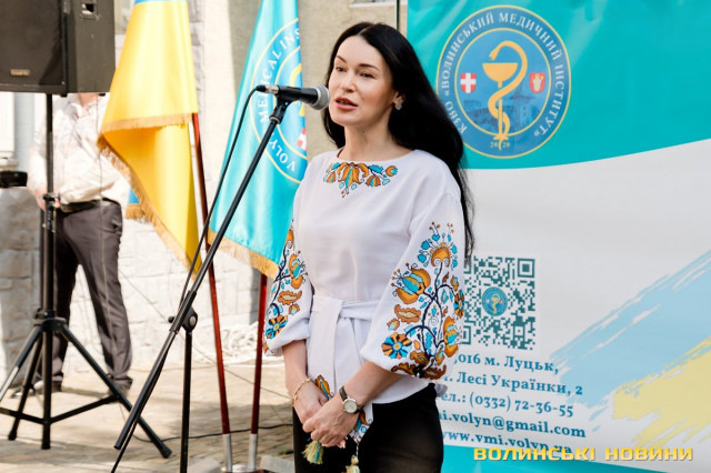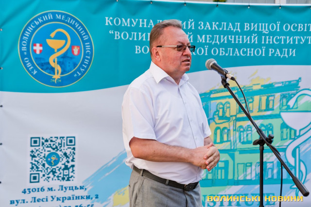 Він звернувся зі щирими словами побажань до студентів, викладачів, батьків. «Хочу привітати з цим прекрасним святом. Ви обрали неймовірно гуманну, милосердну, шляхетну, дуже потрібну професію. Професію людини, яка бореться за життя і здоров'я інших. Професію людини, яка несе порятунок… Досягайте в житті нових вершин, перемагайте, добивайтесь, ставайте кращими. Вас тут навчать, вам тут допоможуть, вас тут підтримають і вам тут дадуть гарний старт у ваше велике, серйозне, майбутнє, доросле, професійне, медичне життя», – підкреслив Григорій Пустовіт.Щемлива мить – хвилина мовчання за полеглими Захисниками України. І це стосується, на жаль, не лише воїнів зі зброєю в руках. Медики служать на фронті – у прямому і переносному сенсі, захищаючи собою наші життя. Інколи їм доводиться жертвувати власними. Квітами, піднесеними до пам’ятної дошки, студенти вшанували пам’ять випускників медінституту – бойових медиків Олександра Сивого та Романа Ткача.Читати ще: Перший на Волині: у Луцьку триває Молодіжний медичний форум. Фото