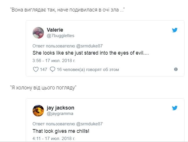 У соціальних мережах пишуть, що дружина Трампа подивилася в очі зла і намагаються вгадати, які ж емоції накрили дружину американського президента в той момент.