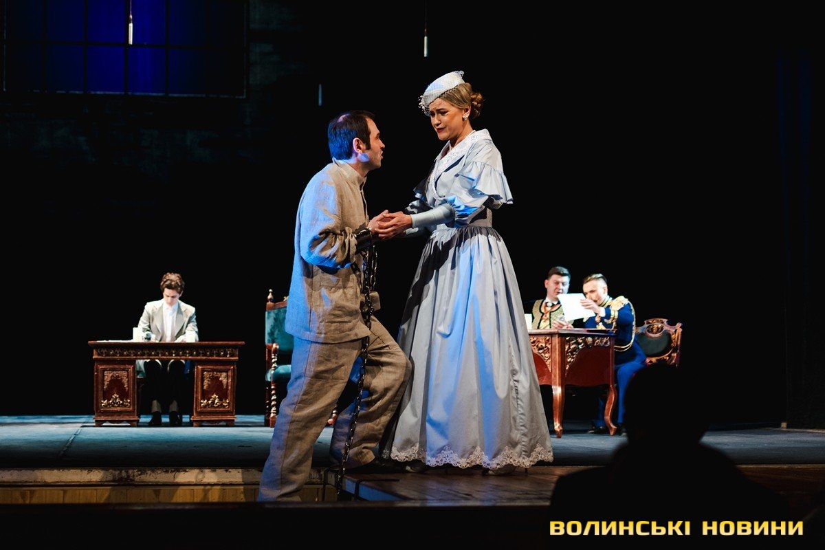 З перших хвилин вистави перед повною залою Волинського облмуздрамтеатру розгорнулася, без перебільшення, історична драма. Пантелеймон Куліш, Микола Костомаров, Юрій Андрузький і Тарас Шевченко, закуті у кайдани, постають перед судом.Членів Кирило-Мефодіївського братства й поета звинувачують у посяганні на безмежну владу тирана і самодержця Миколи Першого. Обвинувачення вимагає відправити бунтівників на ешафот. На захист засуджених стає княгиня Варвара Рєпніна, яка намагається врятувати бодай коханого – Тараса Шевченка.Історія, сповнена душевних мук, авторства Рея Лепіки проводить глядачів через сторінки біографії Кобзаря, перед яким ставлять непростий вибір. Ми знаємо, чим закінчився суд для поета, однак автор і режисер-постановник, заслужений діяч мистецтв України Михайло Ілляшенко, показують, чого це вартувало Тарасу Григоровичу…«Дуже важливо, незважаючи на війну, розвивати культуру. Сьогодні Фонд Ігоря Палиці «Тільки разом» запросив громадські організації, волонтерів, організації, які опікуються соціально вразливими категоріями населення, ветеранські організації, друзів Фонду відвідати виставу, яка розповідає про нелегкий шлях Тараса Григоровича Шевченка. Ми проводимо такі заходи вже тривалий час. Запрошуємо різних людей, аби вони дізнавалися щось нове. Наприклад, організували концерт, на якому звучали пісні, вкрадені у нас Росією... Дуже важливо сьогодні відволікати людей і давати їм правильне, змістовне дозвілля, яке буде налаштовувати на позитив. Дозвілля, яке, можливо, для когось заново розкриватиме ту історію України, яку від нас приховували», – підкреслює Голова правління Фонду Ігоря Палиці «Тільки разом» Катерина Шкльода.Читати ще: «Це історія про дівчинку, яка бачить серцем»: у Луцьку для дітей військових зіграли «Лускунчика»