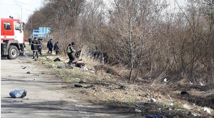 На одному з фото видно розкидані уламки та речі з автомобіля на узбіччі дороги.