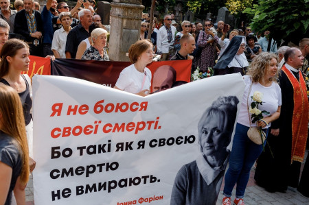 У Львові завершився похорон Ірини Фаріон, який розпочався о 14-ій годині. Щоб попрощатися з мовознавицею та колишньою народною депутаткою в центрі міста біля Гарнізонного храму зібрались тисячі людей.