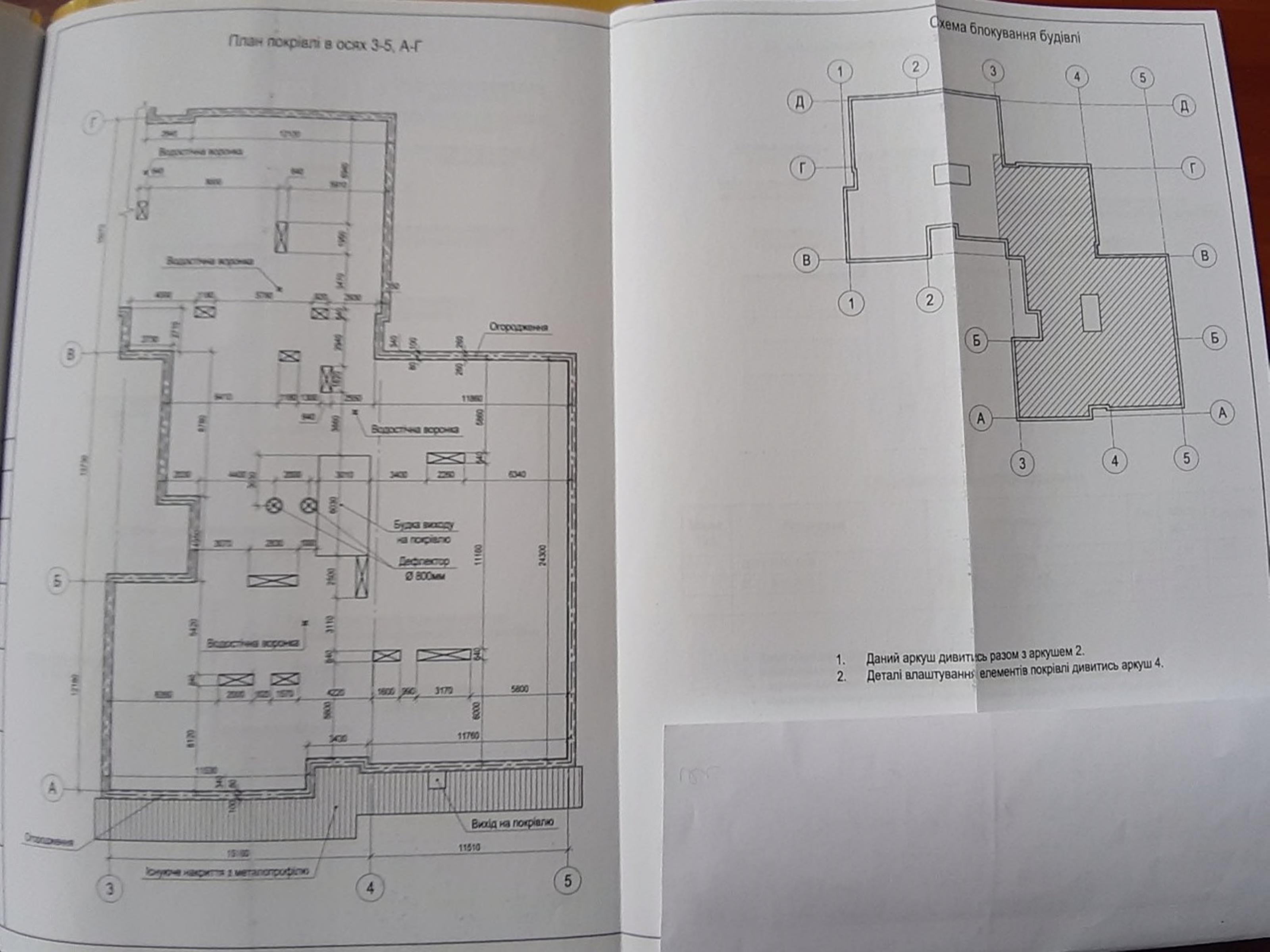 Проєкт ремонту передбачає улаштування покрівлі з полівінілхлоридних мембран на цементобетонній основі, теплоізоляцію та звукоізоляцію конструкцій, прокладання водостічних труб, блискавкозахист.