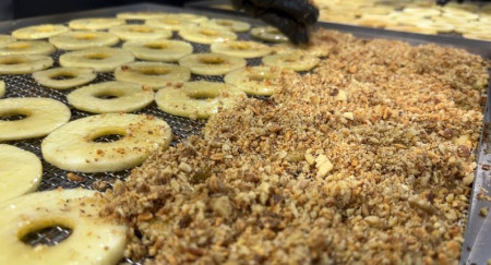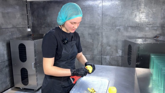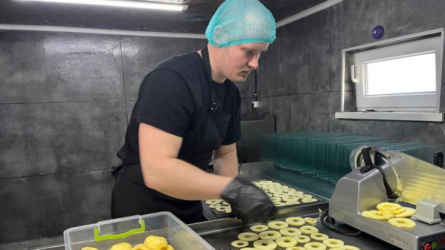 «Фріпси – це чіпси з яблук. В нас вони йдуть з медом і горіхами, щоб були смачніші, солодші, бо, звичайно, роблять просто з яблука», – пояснює господиня.Перед сушінням яблука також миють, зрізають шкірку, пропускають через слайсер – товщина кожного шматочка – 5, 5 мм, змазують медом та посипають горіхами – і в сушарку.Працювати під час війни важко, говорить Максим Лящук. Заважають графіки відключення світла, бо все обладнання для роботи – електричне.