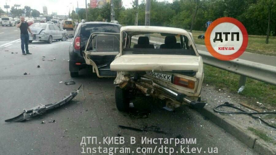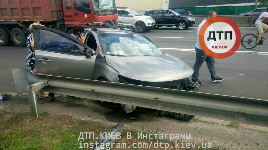 Також повідомляється що сірий Mitsubishi Lancer їхав зі швидкістю близько 130-140 км. Уточнюється, що автомобіль «петляючи, зачепив» Toyota Camry і і при з'їзді з Московського мосту в сторону метро «Петрівка» біля зупинки громадського транспорту його різко розгорнуло поперек і він вдарився у КІА.