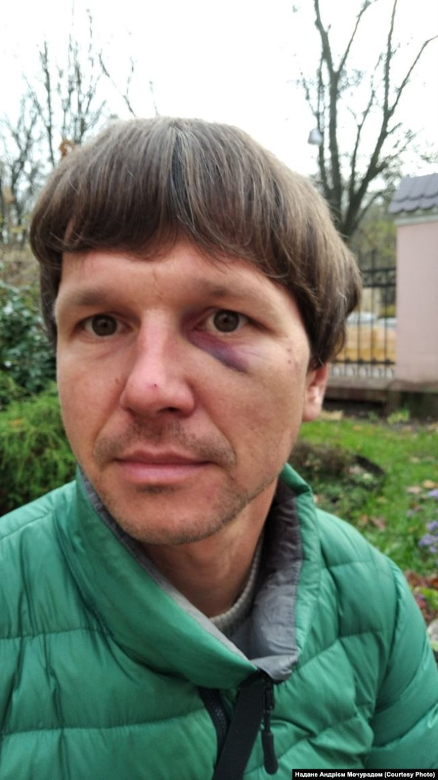 «Ми просто йшли і розмовляли, як троє молодиків, яких ми не знали, перекрили дорогу, почали штовхатись і провокувати бійку. Вони були спортивної статури, по 18-20 років. Коли ми спробували від них відійти, бо бачили, що провокують на бійку, я відчув потужний удар по голові, від чого відлетів на метр. Було запаморочення, тоді на мене посипались удари. Я закрив голову, оборонявся руками і ногами, щоб закрити голову. Один із них почав мене душити, а другий тримав руки, робили чіткі, потужні, цілеспрямовані удари по голові», – розповідає Андрій Мочурад.Віктор Баранник теж отримав численні забої.