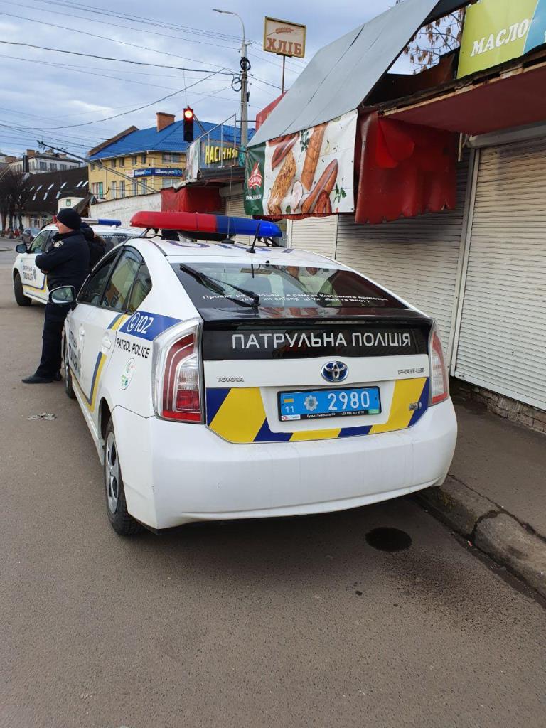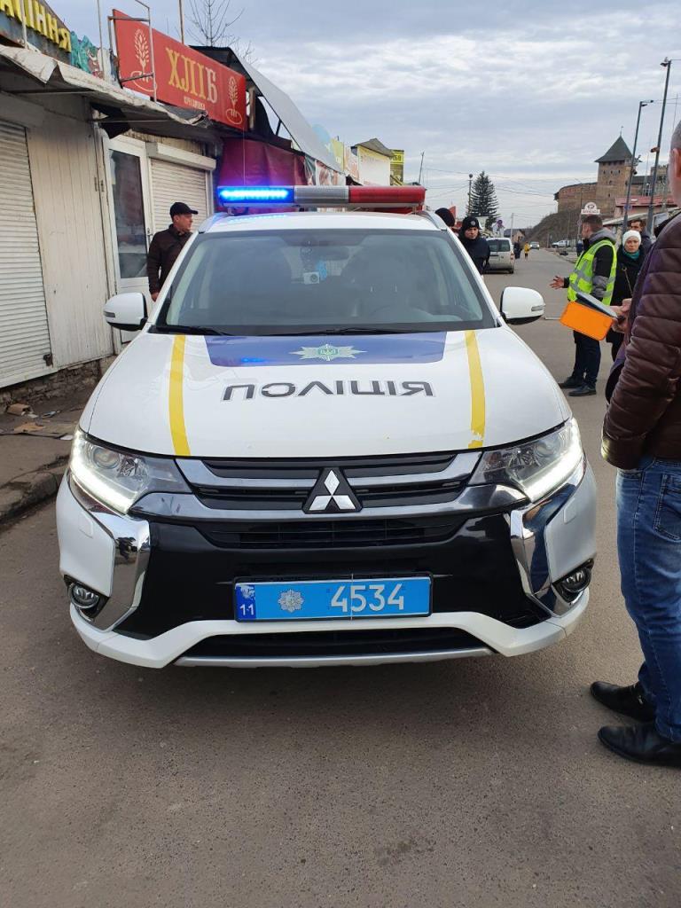 16 лютого поблизу території Центрального ринку чергували Daewoo Lanos д.н. 0448 (ГУ НП), Renault Duster д.н. 0725 (ГУ НП), Mitsubishi Outlander д.н. 4534 (патрульна поліція), Toyota Prius д.н 2940 (патрульні).
