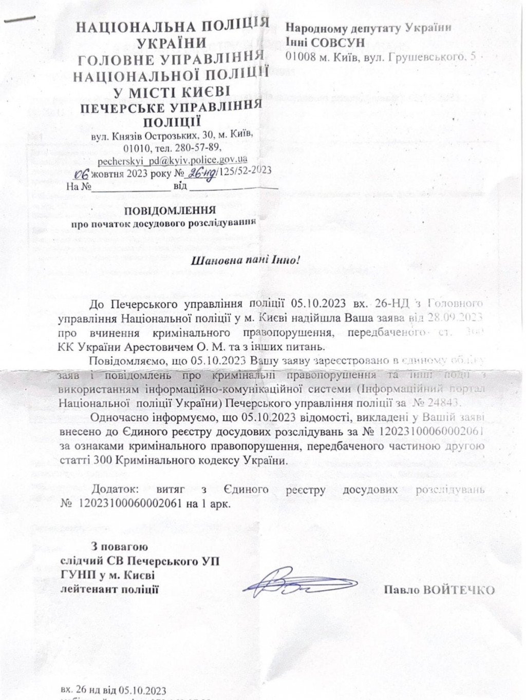 Як відзначила Совсун, тепер поліція зобов’язана провести розслідування. Також вона отримала відповідь від Генпрокурора про те, що справу передали до Київської міської прокуратури. За цією історією, зі слів нардепки, потрібен постійний громадський контроль.«Впевнена, що сам Арестович коментує все на світі, окрім заяви на нього в правоохоронні органи, оскільки розуміє, що влип», – переконана Совсун.Якщо справу доведуть до логічного завершення, каже вона, це буде важливий для України прецедент. Буде доведено, що закон один для всіх, і безкарність – більше не норма.