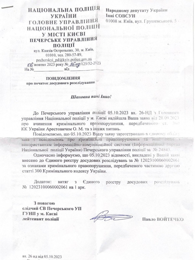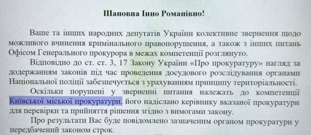 Як зауважила нардепка, поліцією відкрито кримінальне провадження за ч. 2 ст. 300 Кримінального кодексу України – виготовлення або розповсюдження відеопродукції, що пропагує культ насильства та жорстокості, расову, національну чи релігійну нетерпимість та дискримінацію. Карається штрафом від 100 до 300 неоподатковуваних мінімумів доходів громадян або обмеженням волі на строк до 5-ти років.