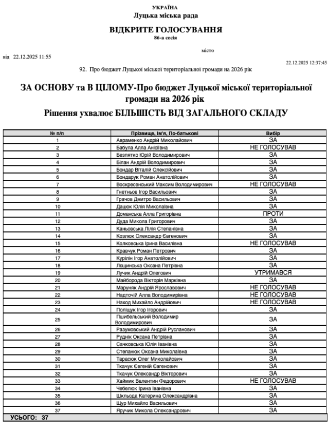 Депутати фракції «Свідомі» не проголосували за бюджет Луцької громади на 2026 рік, який, серед іншого, передбачав на 50 мільйонів збільшення допомоги ЗСУ, 66 мільйонів на підвищення зарплат вихователям та майже 100 мільйонів на допомогу сімʼям загиблих і підтримку ветеранів.