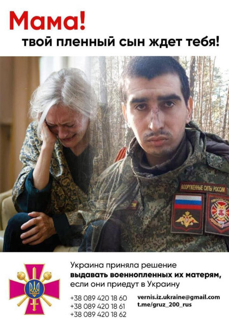 Для цього потрібно зателефонувати на номери телефону, вказані на фото. Аби дізнатися, де перебуває ваш син: у полоні, або загинув, необхідно зайти в телеграм канал Груз 200 https://t.me/gruz_200_rus