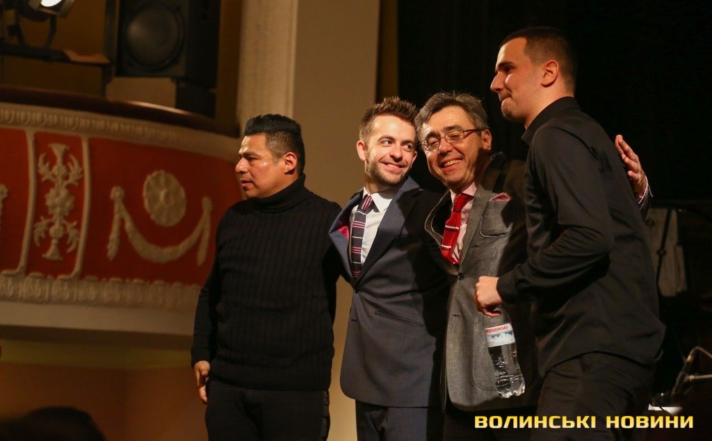 Перед початком виступів ведуча Наталка Войтович нагадала, що у фойє можна придбати шкарпетки, а вилучені з продажу кошти будуть переказані на лікування онкохворої лучанки Мар'яни Пархом'юк.