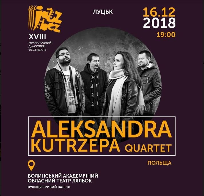 На фестивалі Jazz Bez у Луцьку запалюватиме польський молодий гурт Aleksandra Kutrzepa Quartet. Виступ відбудеться у неділю, 16 грудня з 19:00 в Волинському обласному театрі ляльок.