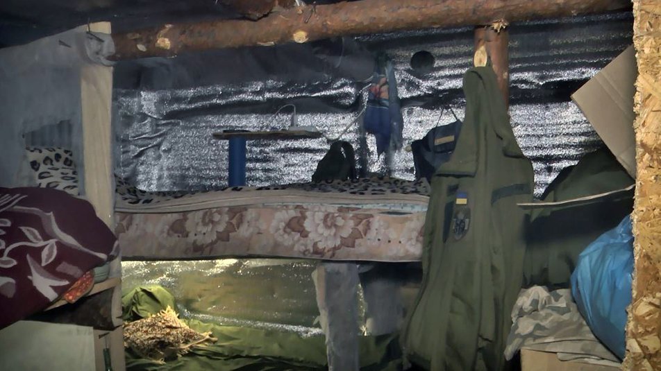 У бліндажі, де військові обігріваються за допомогою буржуйки, облаштували спальні місця для відпочинку. Всередині бліндажу, розповів Роман, закріпили теплоізоляційну фольгу, щоб прискорити процес нагрівання і мінімізувати втрати тепла.«Бліндаж у нас перекритий, робили для себе, бо якщо буде якийсь прильот, то щоб бліндаж витримав і не завалило хлопців під завалом. Старалися, щоб було комфортно тут, чим могли оббивали. Зробили, щоб відчувався затишок як вдома», – сказав боєць.