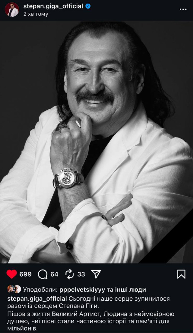 Команда співака 19 листопада повідомила, що Степан Гіга потрапив у лікарню, де йому провели термінову операцію. Його стан оцінюють, як важкий.