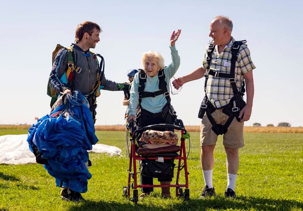 Дороті Гоффнер усміхалася, коли здійснила свій історичний стрибок з висоти понад 4 км. Приземлившись, довгожителька крикнула: «Вік – це лише число. Який стосунок має вік до того, що ви робите? Мені 104 роки, і що?»