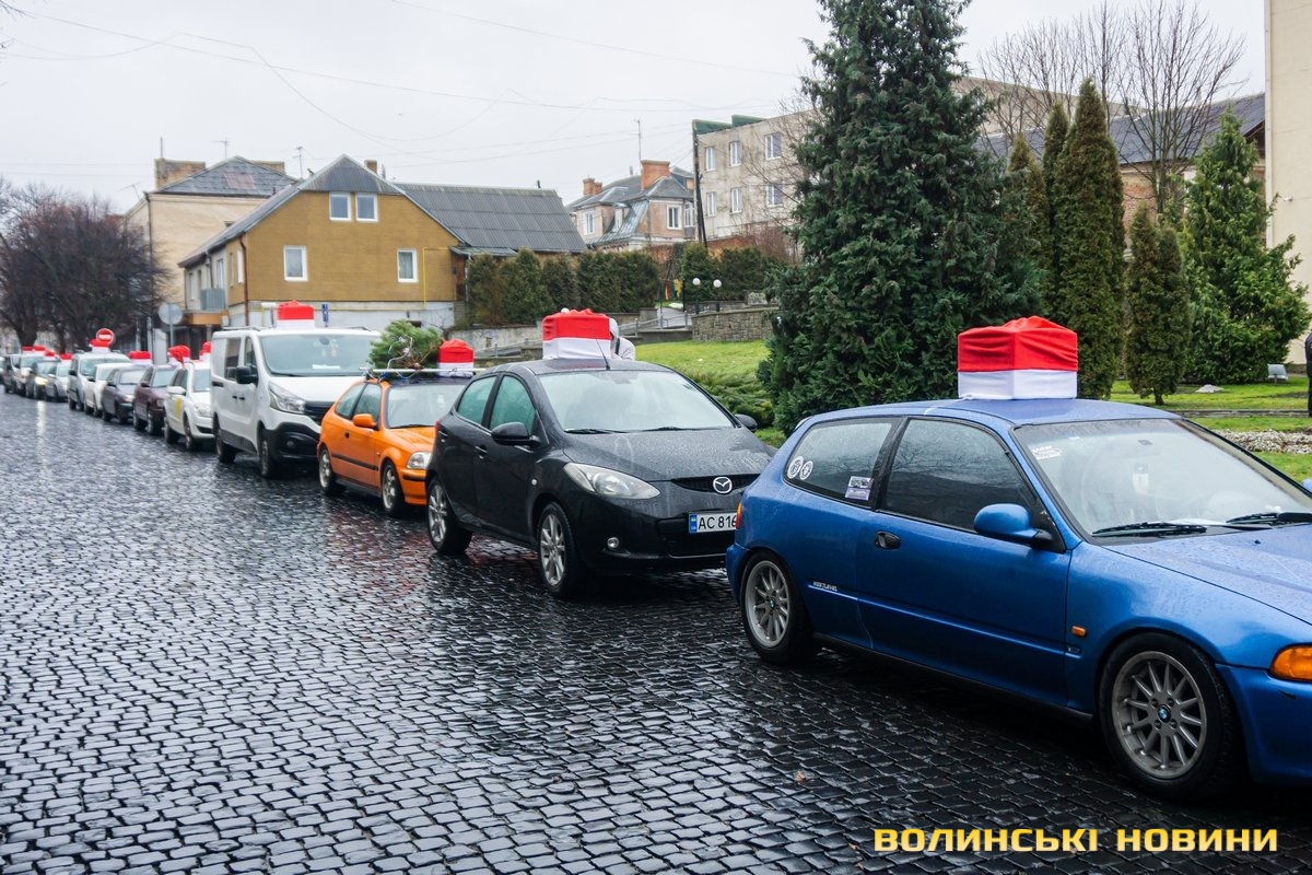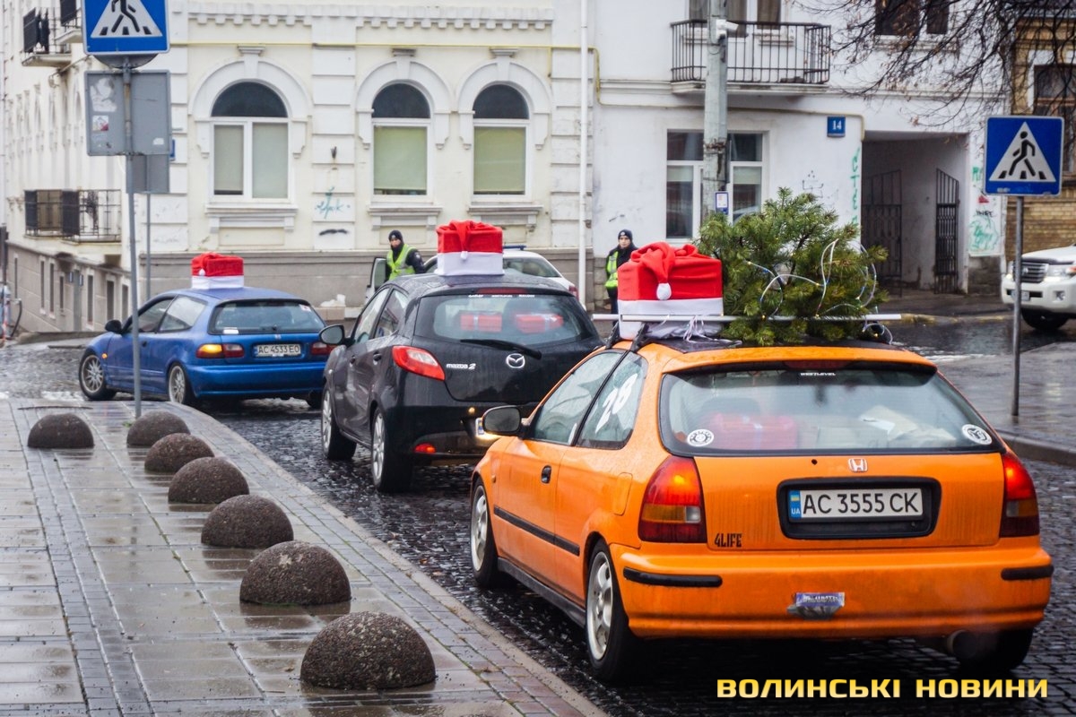 Атмосфера свята захоплює одразу, незважаючи на дощ! Весела музика, яскраве вбрання волонтерів, довгий ряд автівок, оздоблених новорічними прикрасами. Усе, аби діти, до яких сьогодні завітають помічники Святого Миколая, відчули, що про них піклуються.