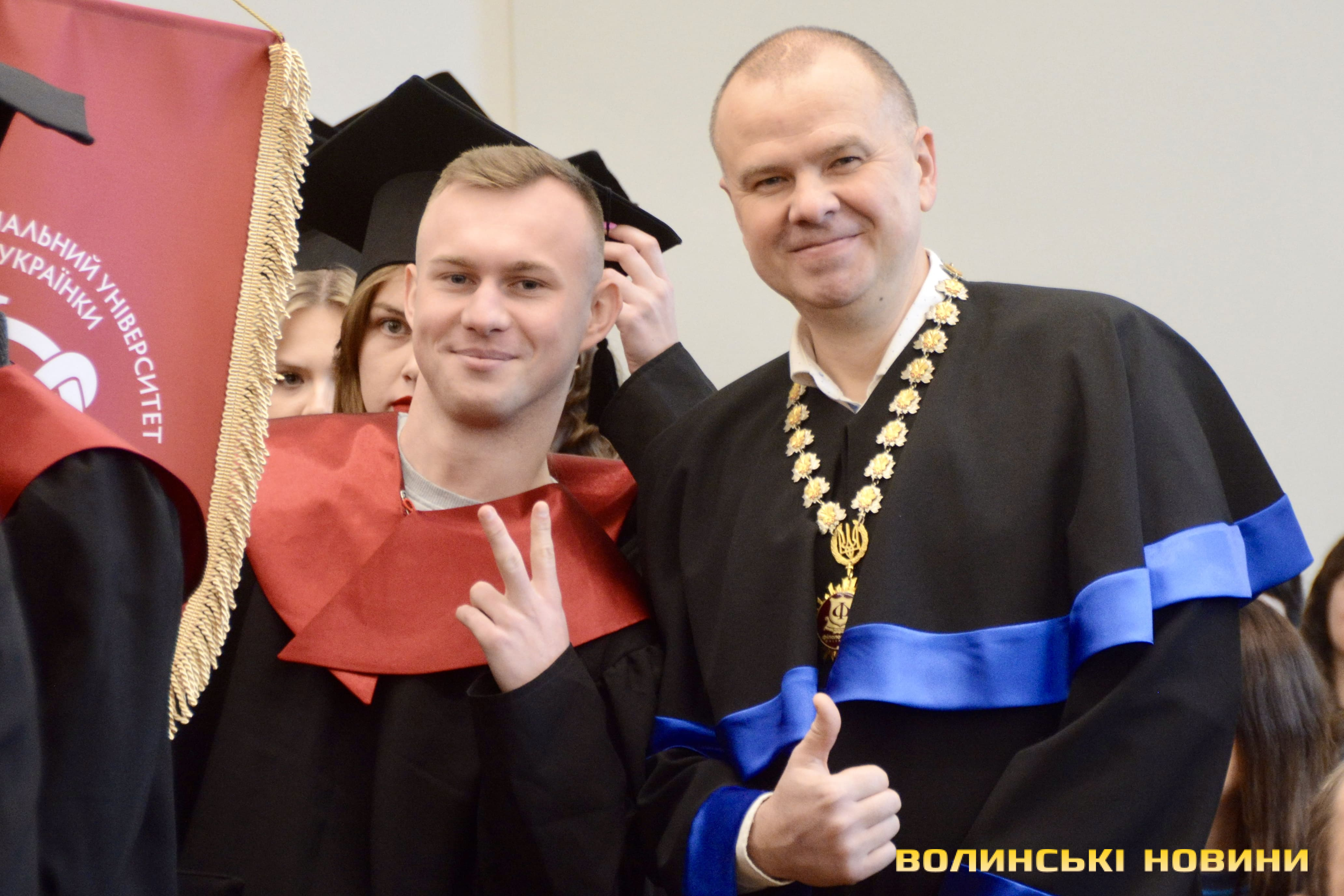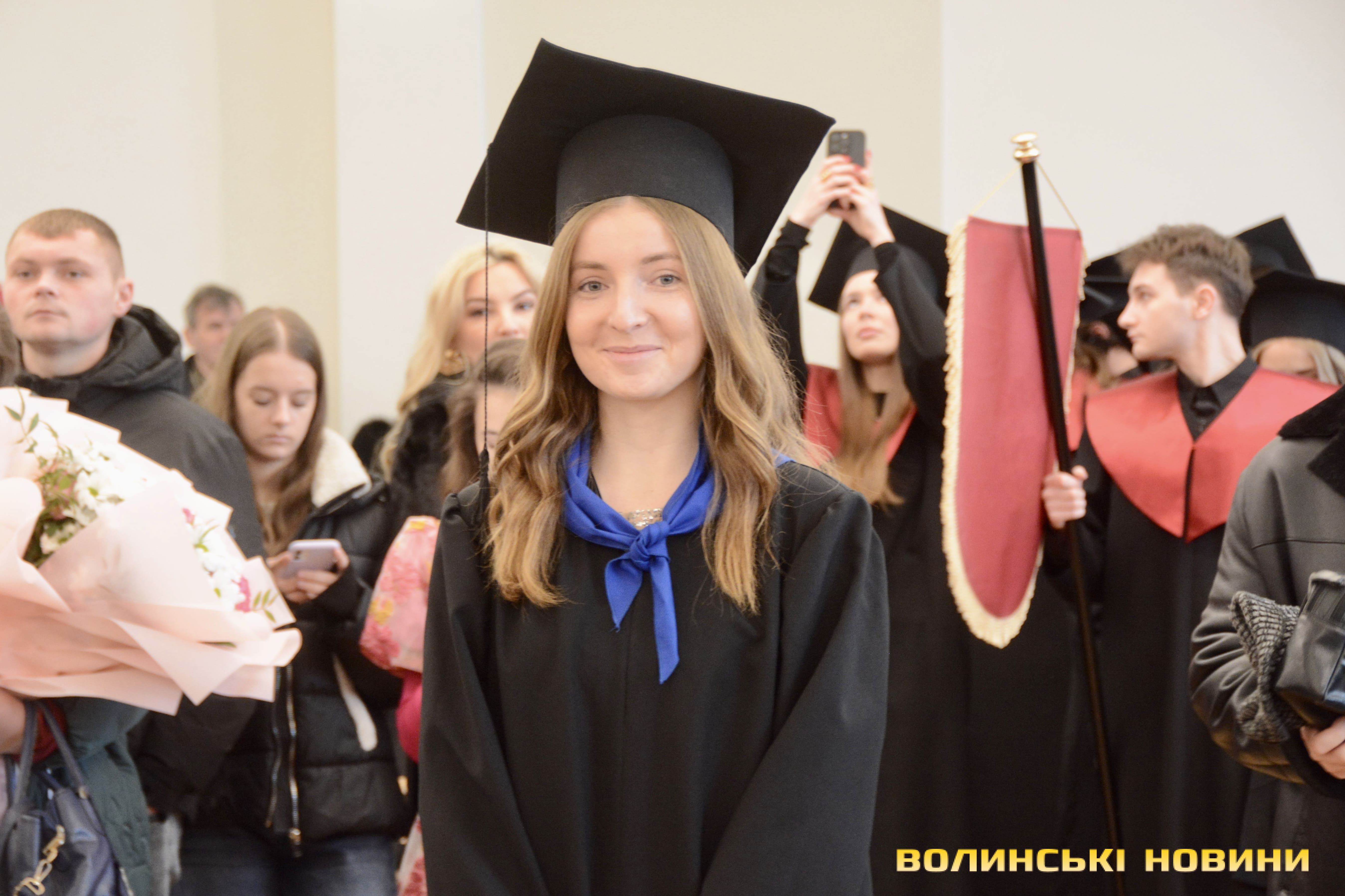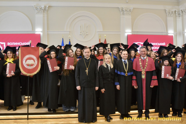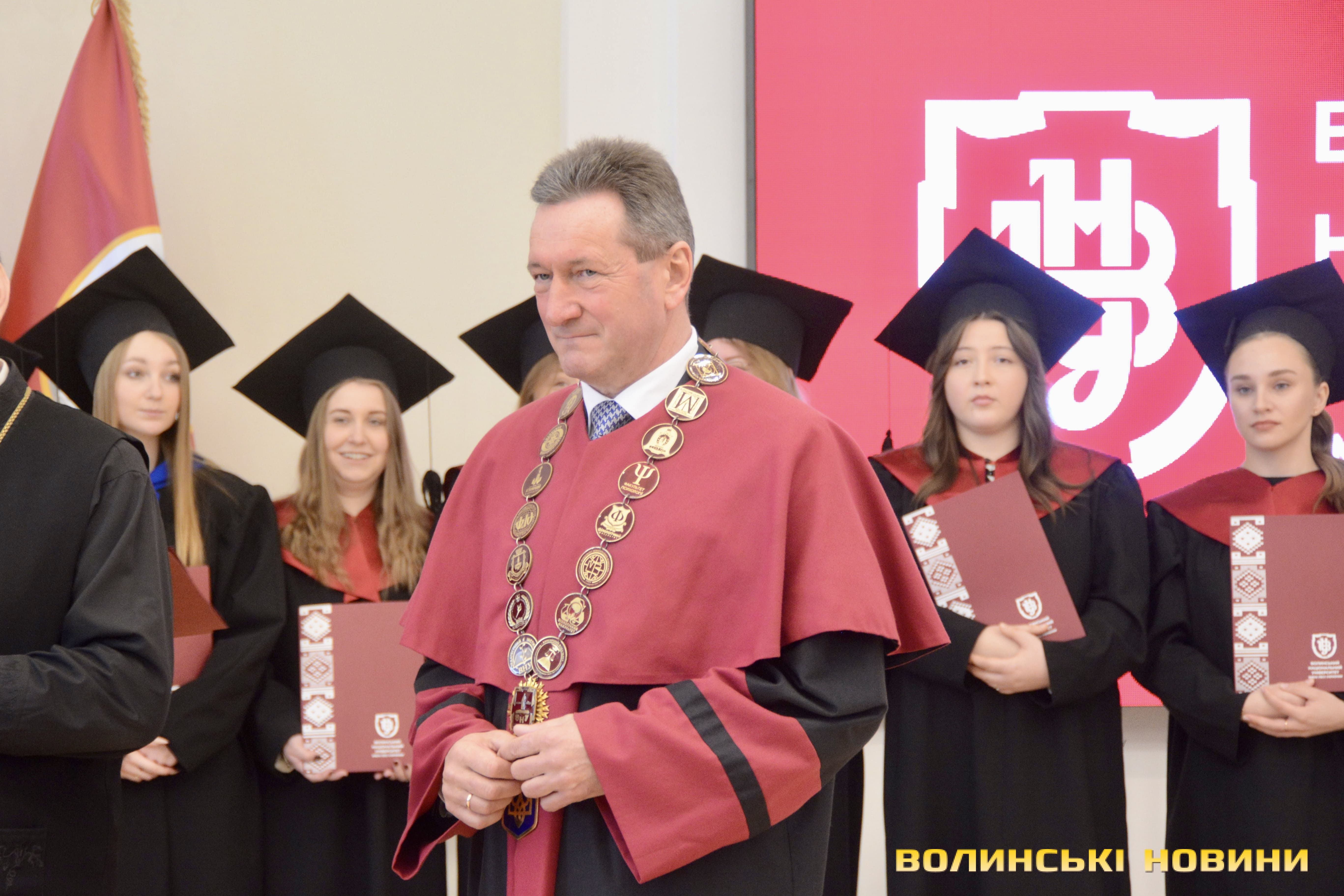 «Усе залежить лише від вас. Як казав Богдан Ступка, роби справу чесно, з душею – і твоє до тебе прийде. Тому щиро бажаю вам успіху, реалізувати різноманітні проєкти, бути здоровими і щасливими, працювати для нашої України», – заохотив випусників ректор ВНУ імені Лесі Українки.До привітань долучилися також т. в. о. голови Волинської ОВА Роман Романюк і перший заступник голови Волинської обласної ради Юрій Поліщук, а благословив випускників на щасливе майбутнє настоятель храму Софії Премудрості Божої при ВНУ отець Віктор Пушко.«На мою думку, високоосвічена людина – це не тільки той, хто багато знає. Це той, хто вміє використовувати свої знання. Я сподіваюся, що Україна, та й світ загалом, належно оцінять ваші компетенції. Благословляємо всіх вас на подальший життєвий шлях. Нехай Господь благословить ваші майбутні здобутки, допоможе реалізувати всі ваші задуми та наміри», – сказав отець Віктор Пушко.Потому випускникам вручили дипломи.