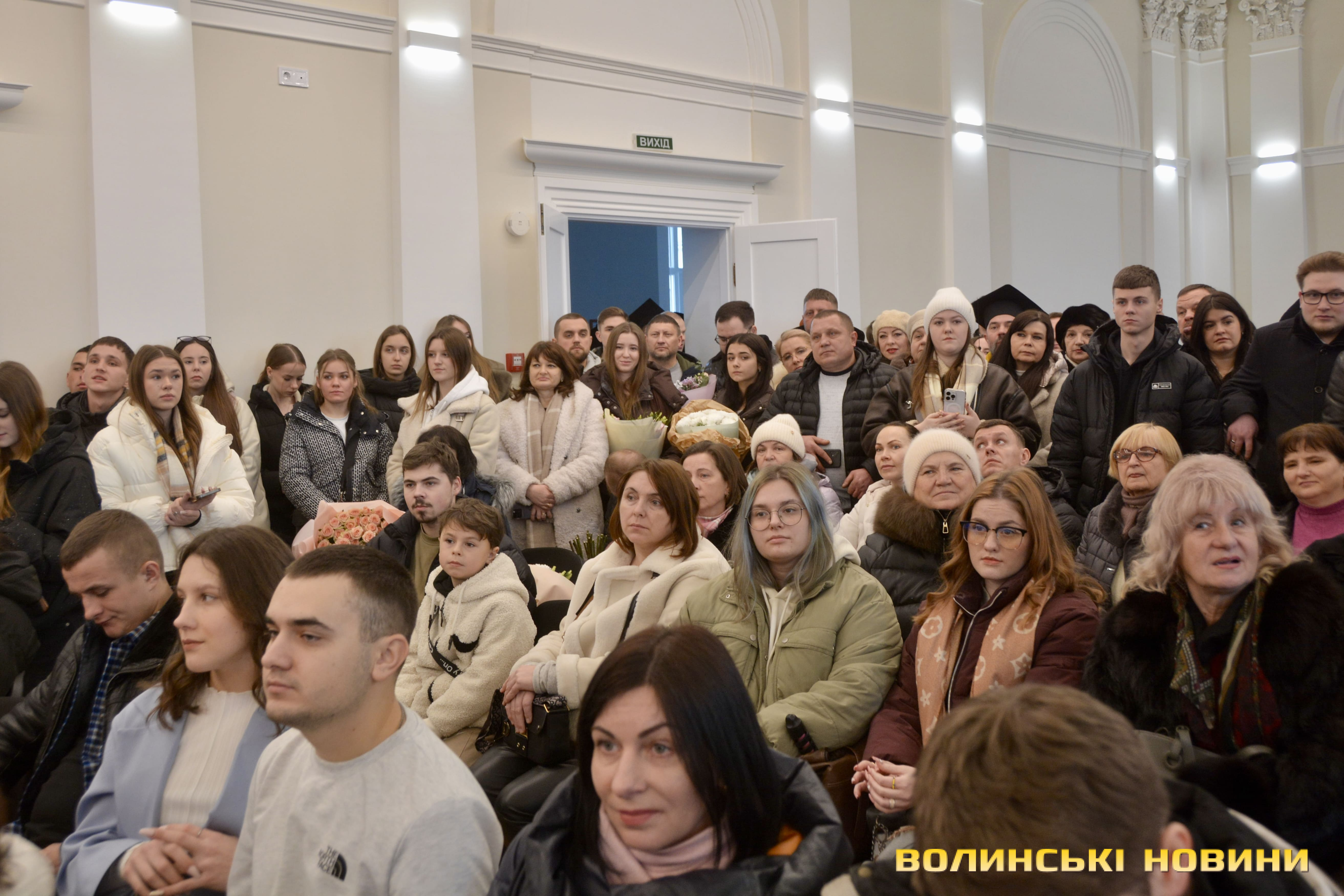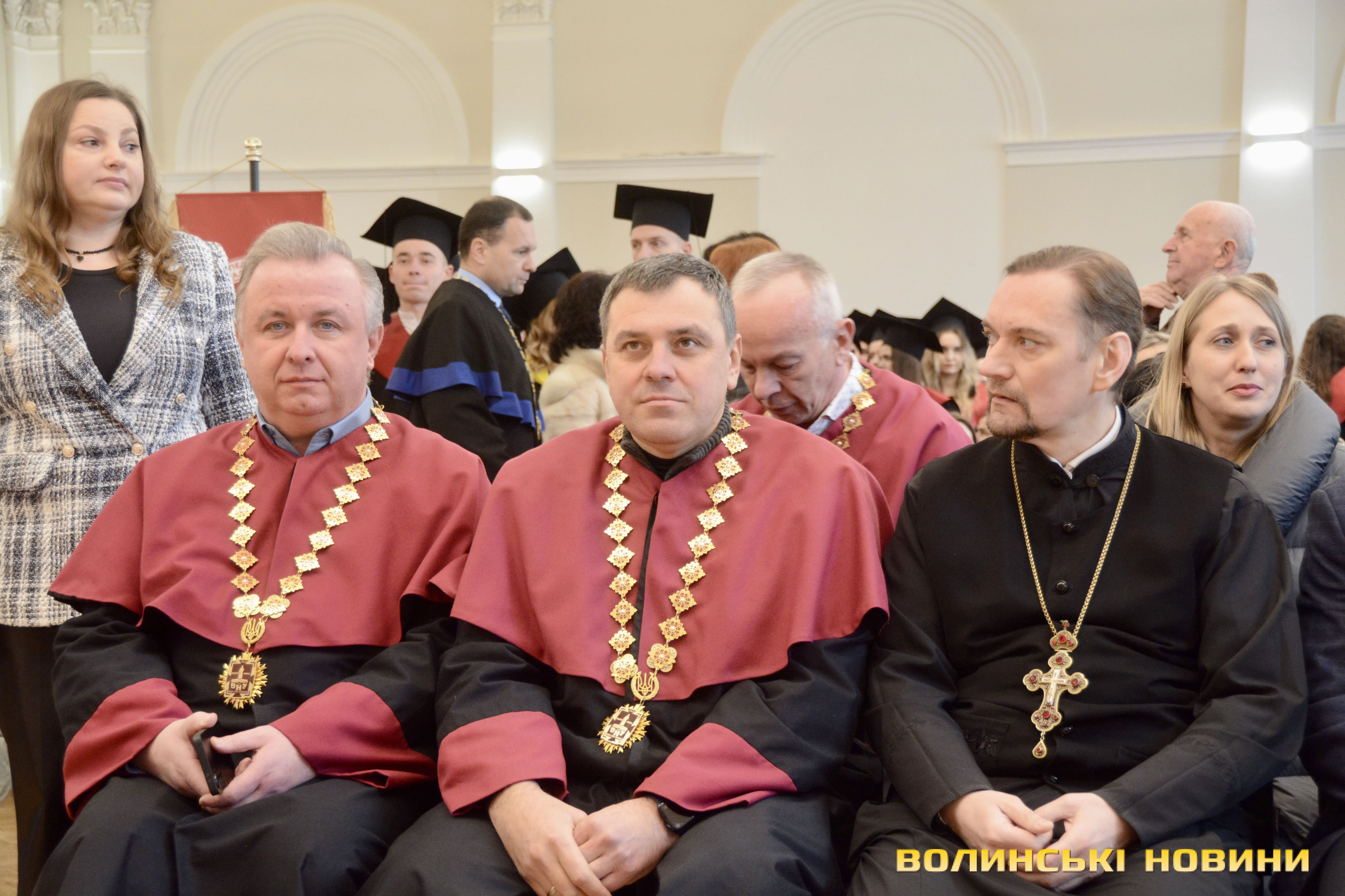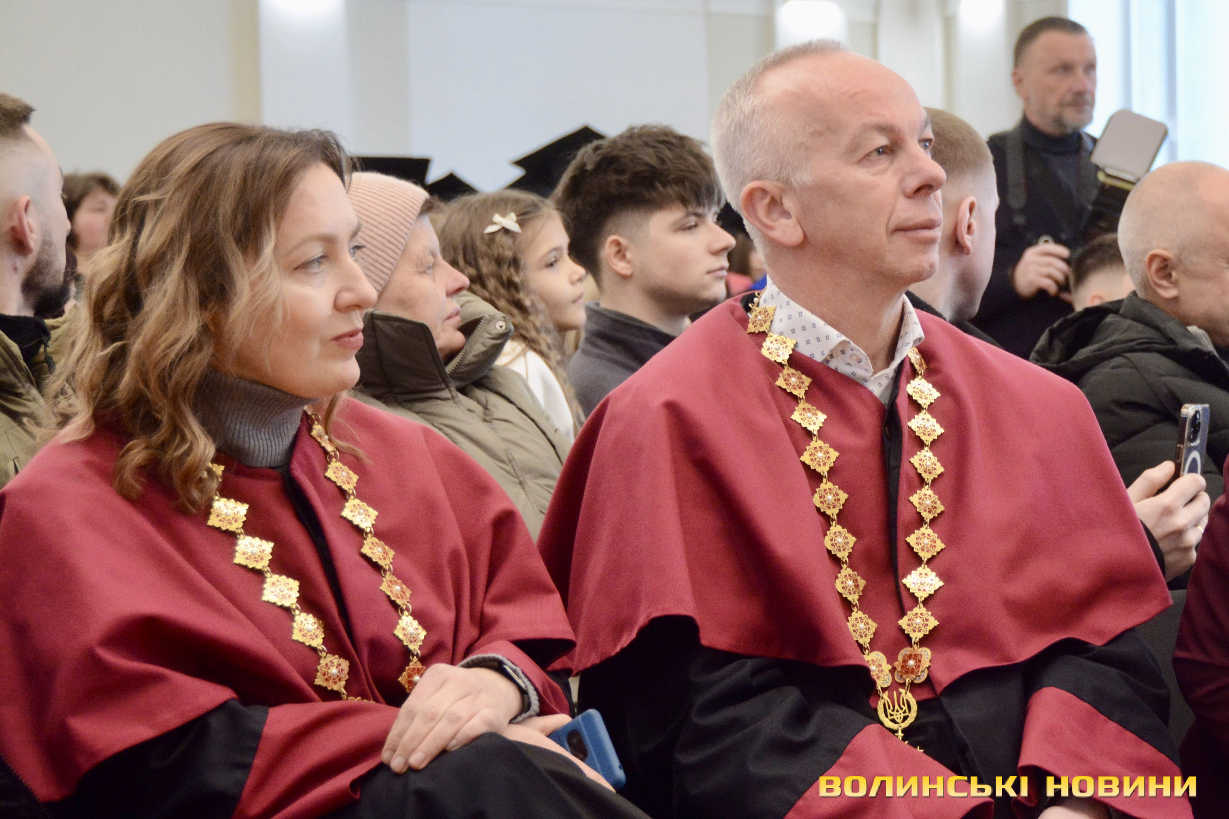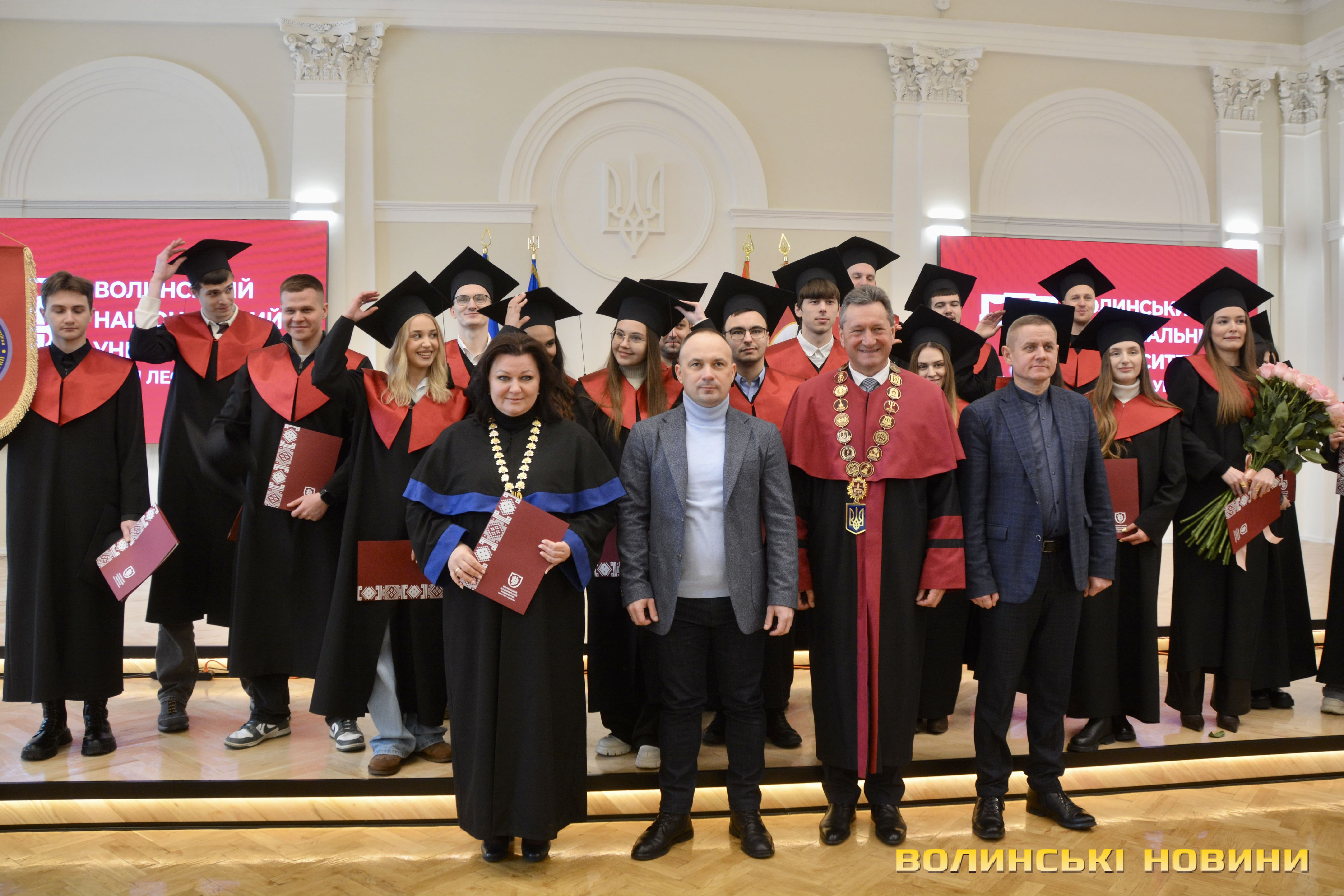 «Усе залежить лише від вас. Як казав Богдан Ступка, роби справу чесно, з душею – і твоє до тебе прийде. Тому щиро бажаю вам успіху, реалізувати різноманітні проєкти, бути здоровими і щасливими, працювати для нашої України», – заохотив випусників ректор ВНУ імені Лесі Українки.До привітань долучилися також т. в. о. голови Волинської ОВА Роман Романюк і перший заступник голови Волинської обласної ради Юрій Поліщук, а благословив випускників на щасливе майбутнє настоятель храму Софії Премудрості Божої при ВНУ отець Віктор Пушко.«На мою думку, високоосвічена людина – це не тільки той, хто багато знає. Це той, хто вміє використовувати свої знання. Я сподіваюся, що Україна, та й світ загалом, належно оцінять ваші компетенції. Благословляємо всіх вас на подальший життєвий шлях. Нехай Господь благословить ваші майбутні здобутки, допоможе реалізувати всі ваші задуми та наміри», – сказав отець Віктор Пушко.Потому випускникам вручили дипломи.