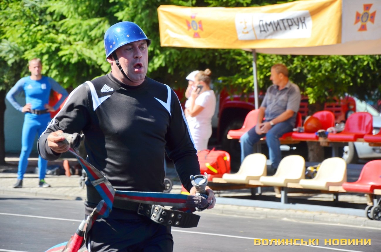 «Це дитяча мрія. Я завжди захоплювався відвагою, мужністю цих хлопців і хотів стати таким же. Я професійно займаюся пожежно-прикладним спортом. У вільний від роботи час приходжу на стадіон і удосконалюю свою майстерність, свої навики, аби в подальшому у роботі це давало результати й мені було набагато простіше виконувати бойові завдання», – поділився Володимир Климюк.Перемогу в першому виді змагань – підйомі штурмовою драбиною у вікно четвертого поверху навчальної башти – здобув В. Стасюк із 15-ї державної пожежно-рятувальної частини. Його результат – 13,68 секунди. Друге місце посів Олександр Андрійчук із оперативно-координаційного центру ГУ ДСНС в області з результатом 13,72 секунди. Третім став Володимир Стасюк із 20-ї державної пожежно-рятувальної частини (14,25 секунди).