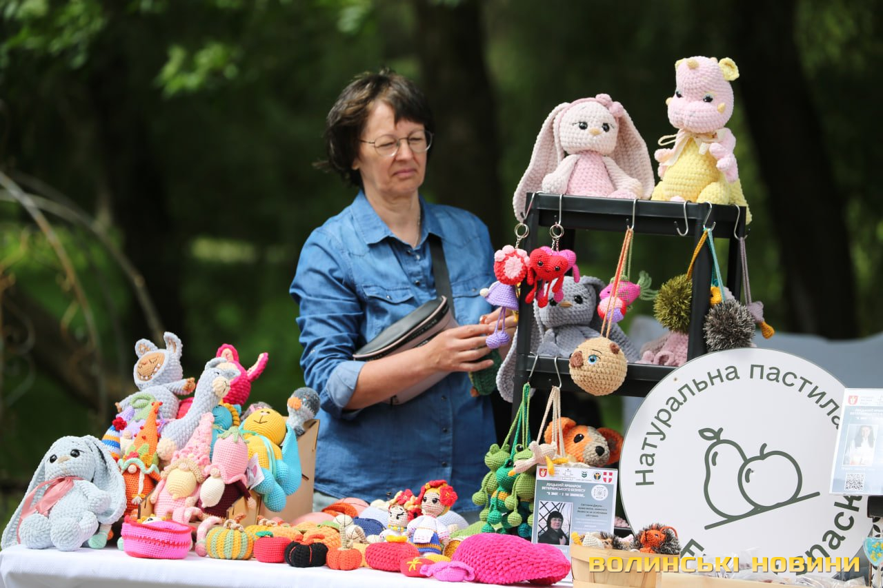 Також на ярмарок завітали мама та донька Людмила і Анастасія Островські, які виготовляють різноманітні вироби ручної роботи – магніти, мило, прикраси з бісеру. Разом вони долучаються до благодійних зборів волонтерського центру Колківської громади, тому регулярно беруть участь у різних активностях, проте на Луцькому ярмарку побували вперше. Людмила розповіла – життєва ситуація склалася дуже важкою, на війні загинув її рідний брат, який вісім місяців вважався зниклим безвісти, а у грудні сімʼя дізналася про його загибель. Тож, благодійні збори – це найменше, чим можна допомогти військовим.«Взагалі виготовленням виробів ми займаємося давно, але волонтерською діяльністю почали займатися з першого дня повномасштабного вторгнення. На базі нашої школи був такий своєрідний осередок і ми шили різні подушки, турнікети, готували їсти – усе, що могли зробити. Дуже багато різних ярмарків пройшли, але саме на луцькому ми вперше. Нам подобається, тут досить цікаво. Багато різних людей, які виставляють якусь свою продукцію, кожен старається якось допомогти, взаємоспівпрацювати. Це чудово», – поділилася враженнями від ярмарку пані Людмила.Проведення ветеранських ярмарків буде здійснюватися і надалі. Як вже зазначали організатори, щоразу локація буде змінюватися, аби познайомити учасників з різними цікавими місцями Луцька та продовжувати популяризувати ветеранський рух.