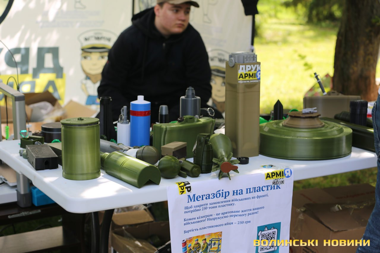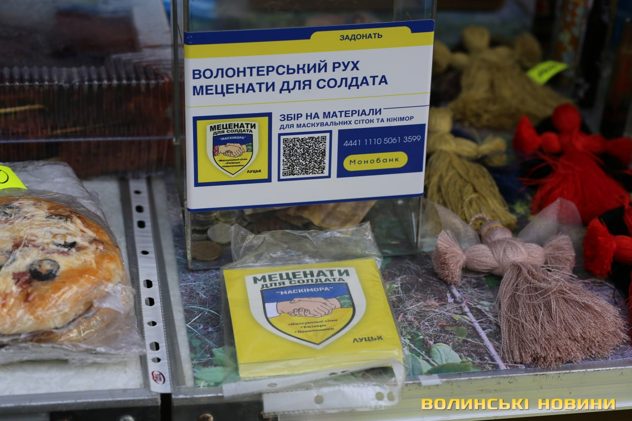 До пʼятого ярмарку ветеранського бізнесу долучилися не лише окремі особи, але й волонтерські організації. Одним з них став проєкт «Меценати для солдата». Його представники, студенти ВНУ імені Лесі Українки Аксінія Марченко та Данило Демчук, розповіли – у них можна придбати різноманітні вироби – від випічки до розфарбованих гільз, і усі виручені кошти підуть на допомогу нашим бійцям на фронті.«Організація працює з початку війни на Донбасі у 14-му році, а масштабували діяльність з початком повномасштабного вторгнення і почали плести сітки за новими форматами. І зараз ми розвинулися до того, що військові нам можуть надіслати фото місцевості, для якої потрібно зробити сітку, і ми вже під неї підберемо візерунок», – розповідають про діяльність організації студенти.