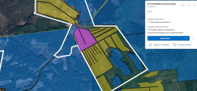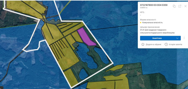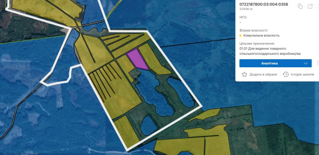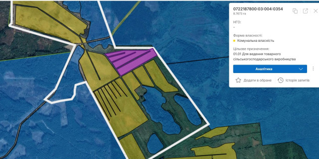 Загальна площа перерахованих земельних ділянок сягає понад 80 гектарів.